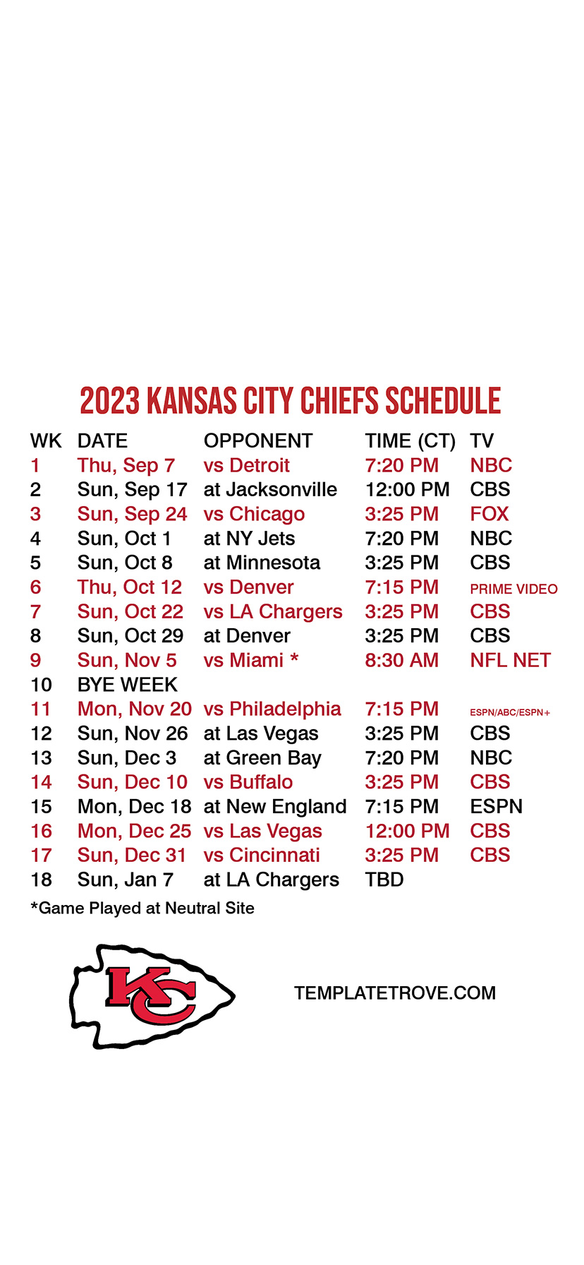 2023-24 Kansas City Chiefs Lock Screen Schedule