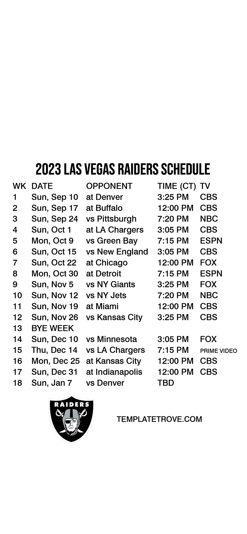 2023-24 Las Vegas Raiders Lock Screen Schedule