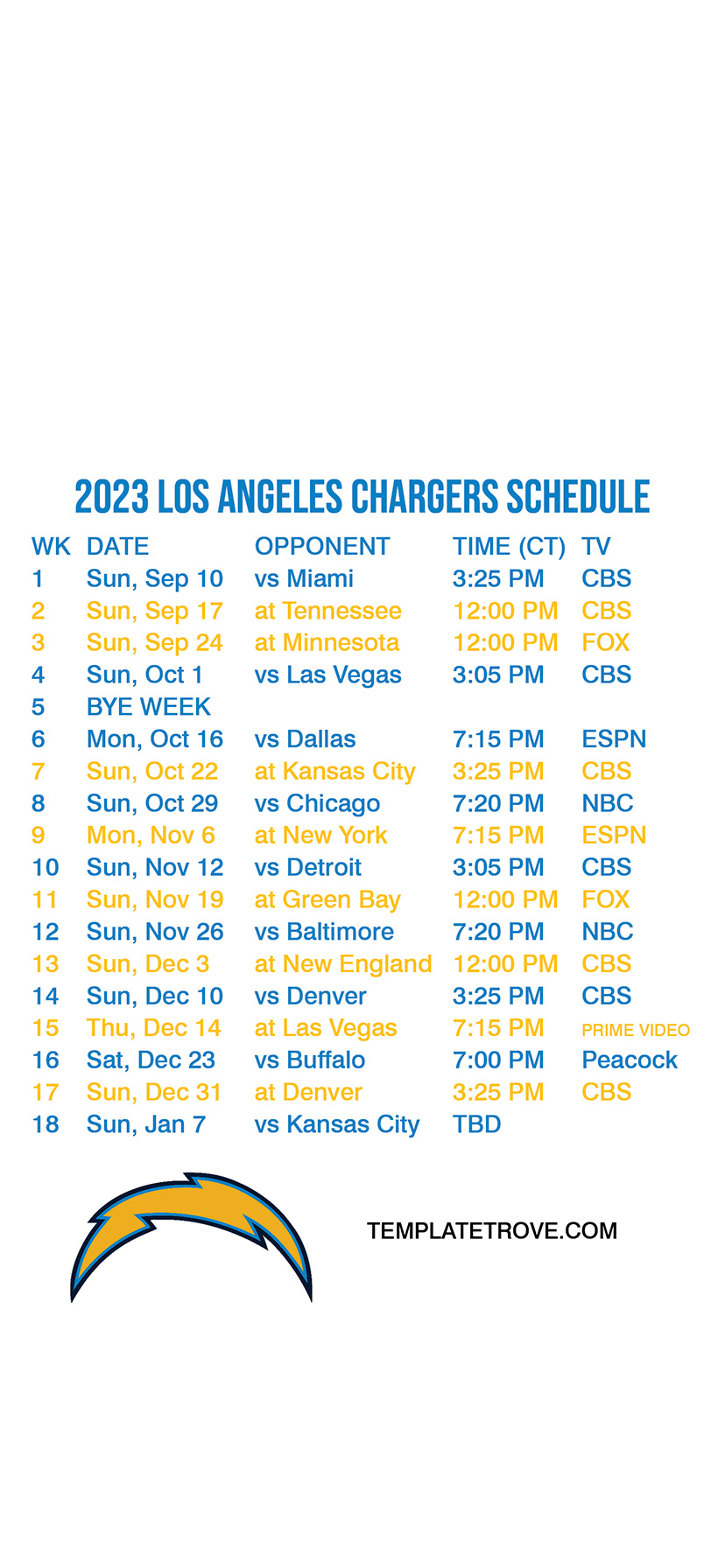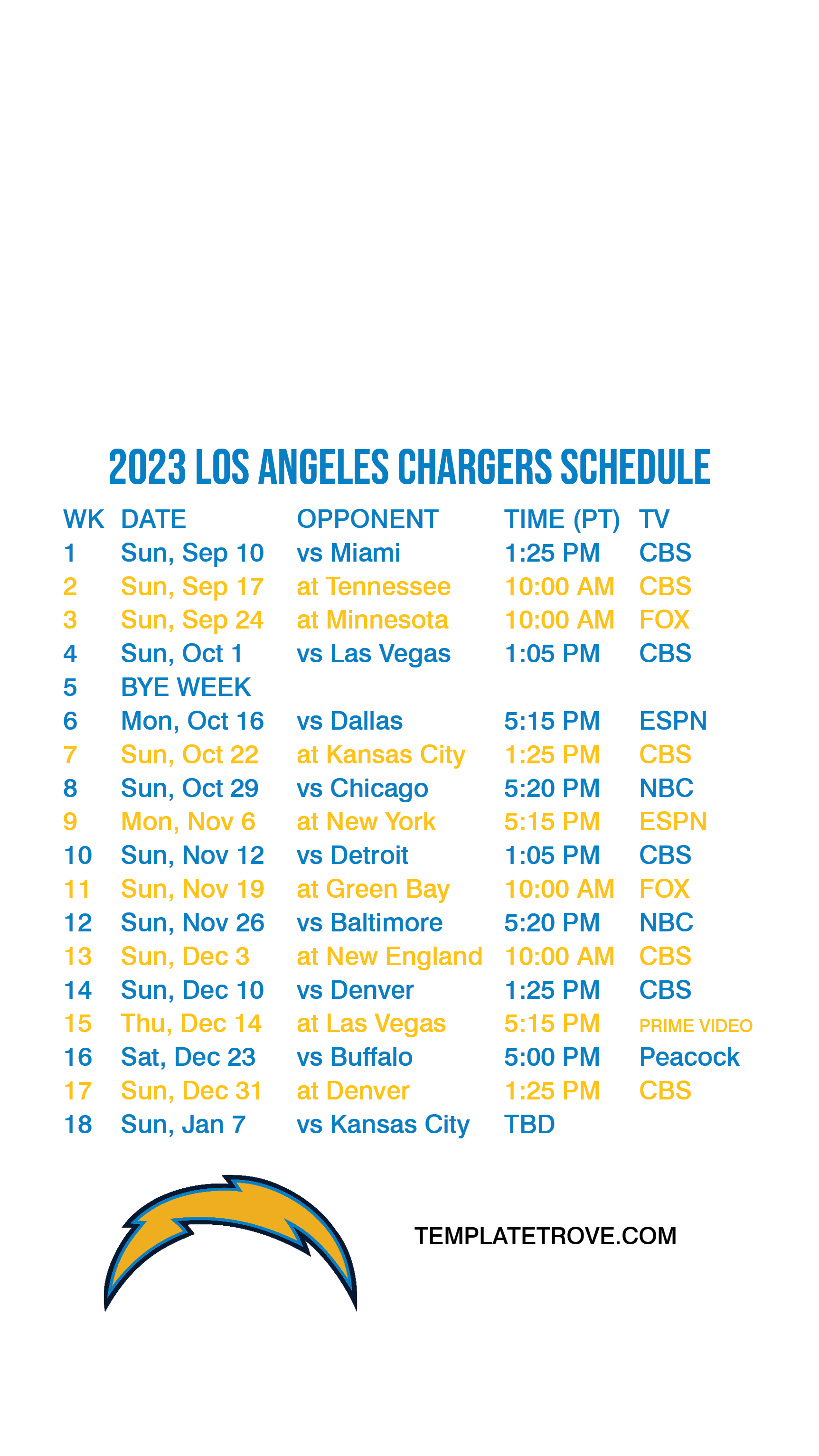 Los Angeles Chargers Lock Screen Schedule for iPhone 6, 7, 8