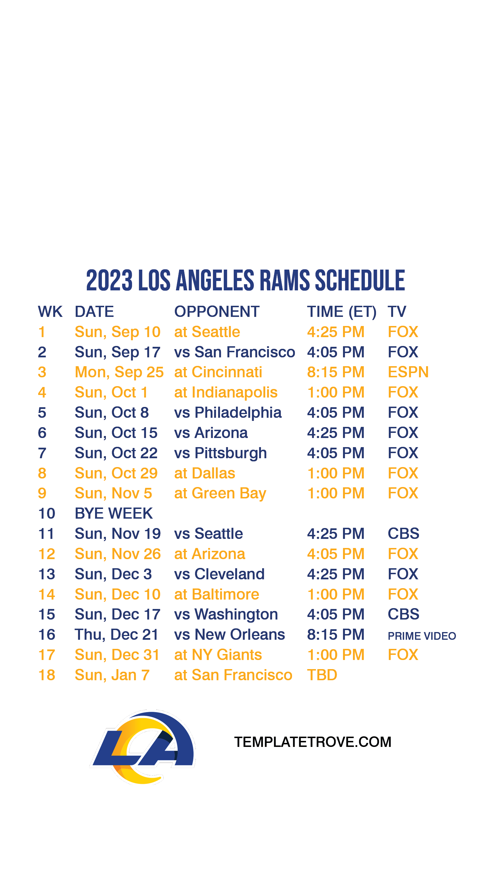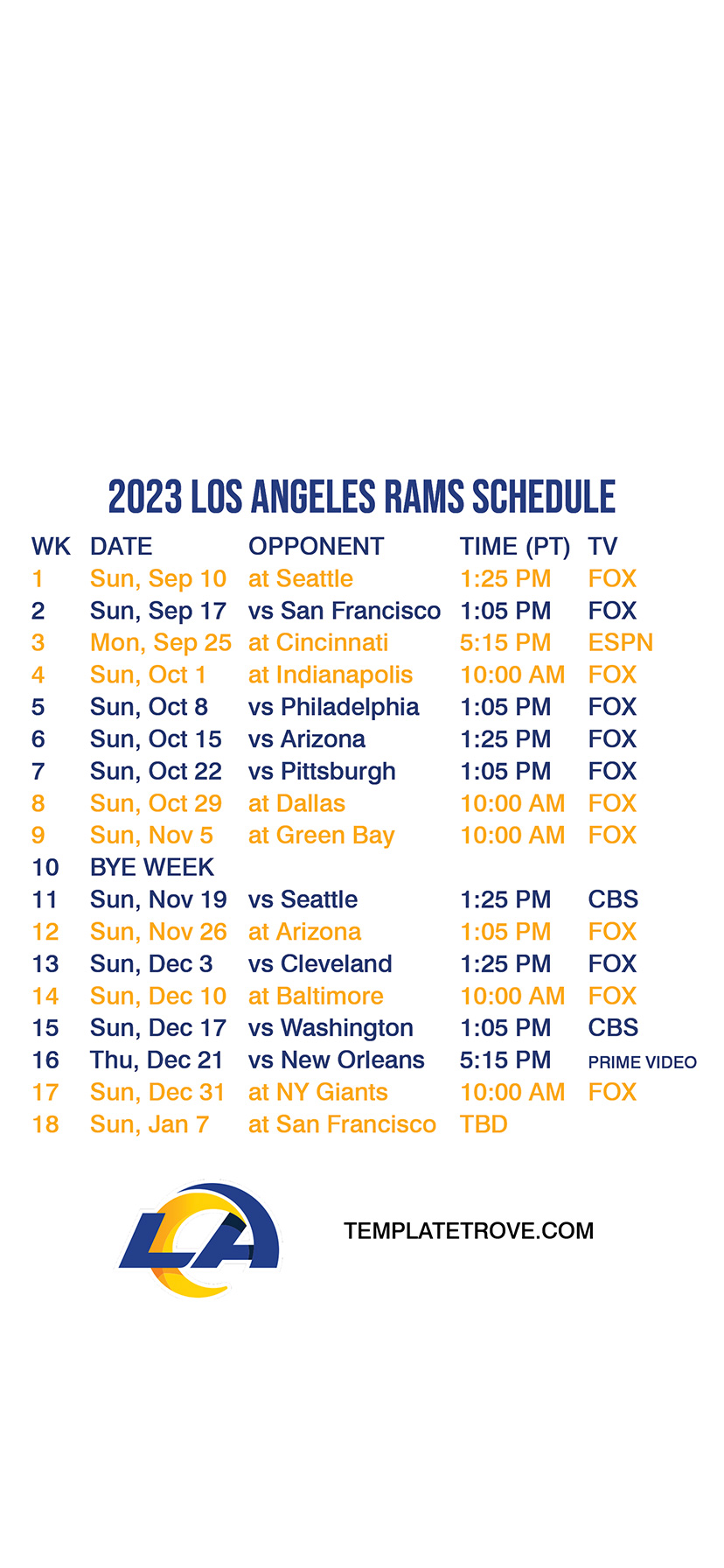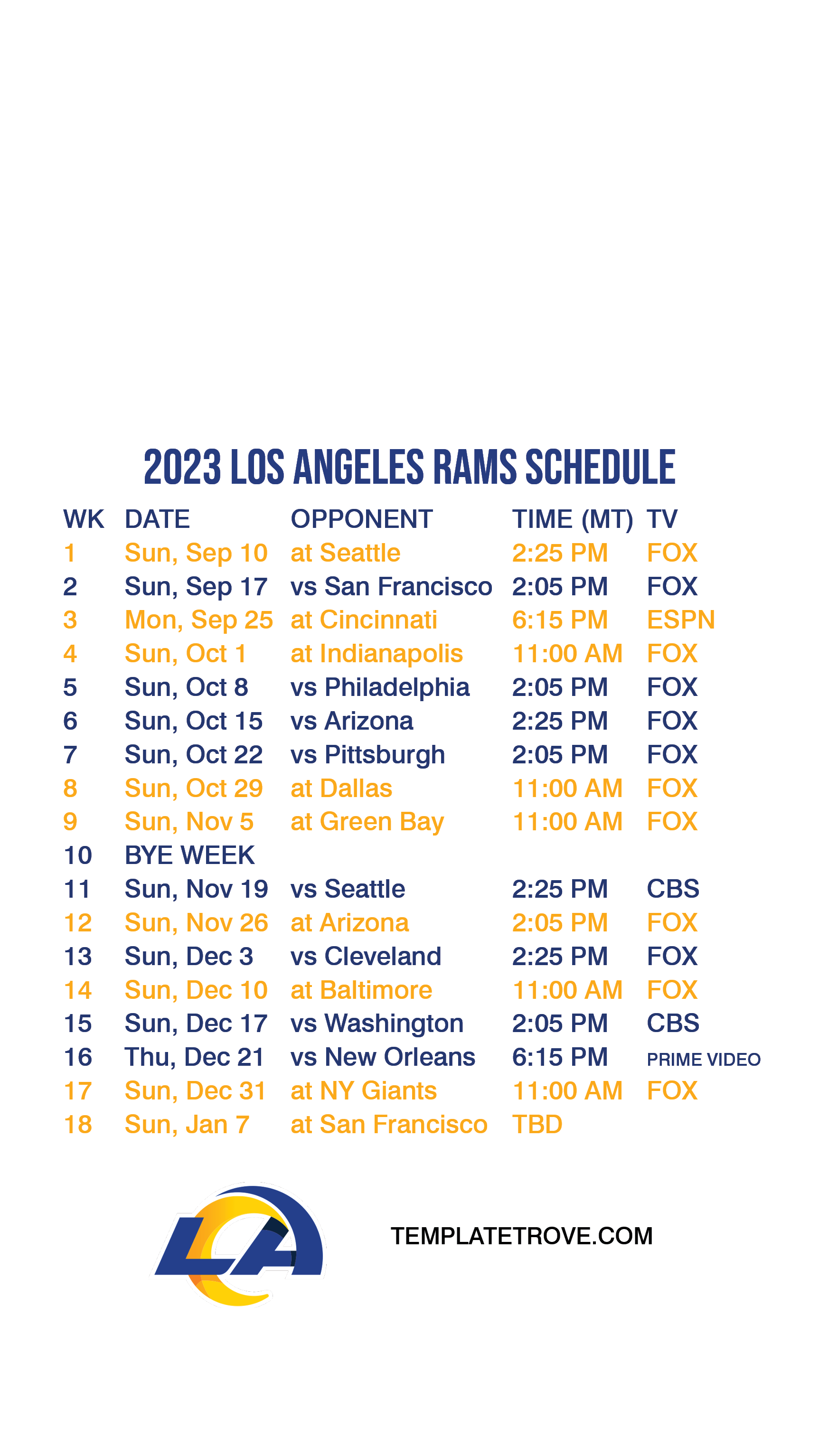 Los Angeles Rams Lock Screen Schedule for iPhone 6, 7, 8
