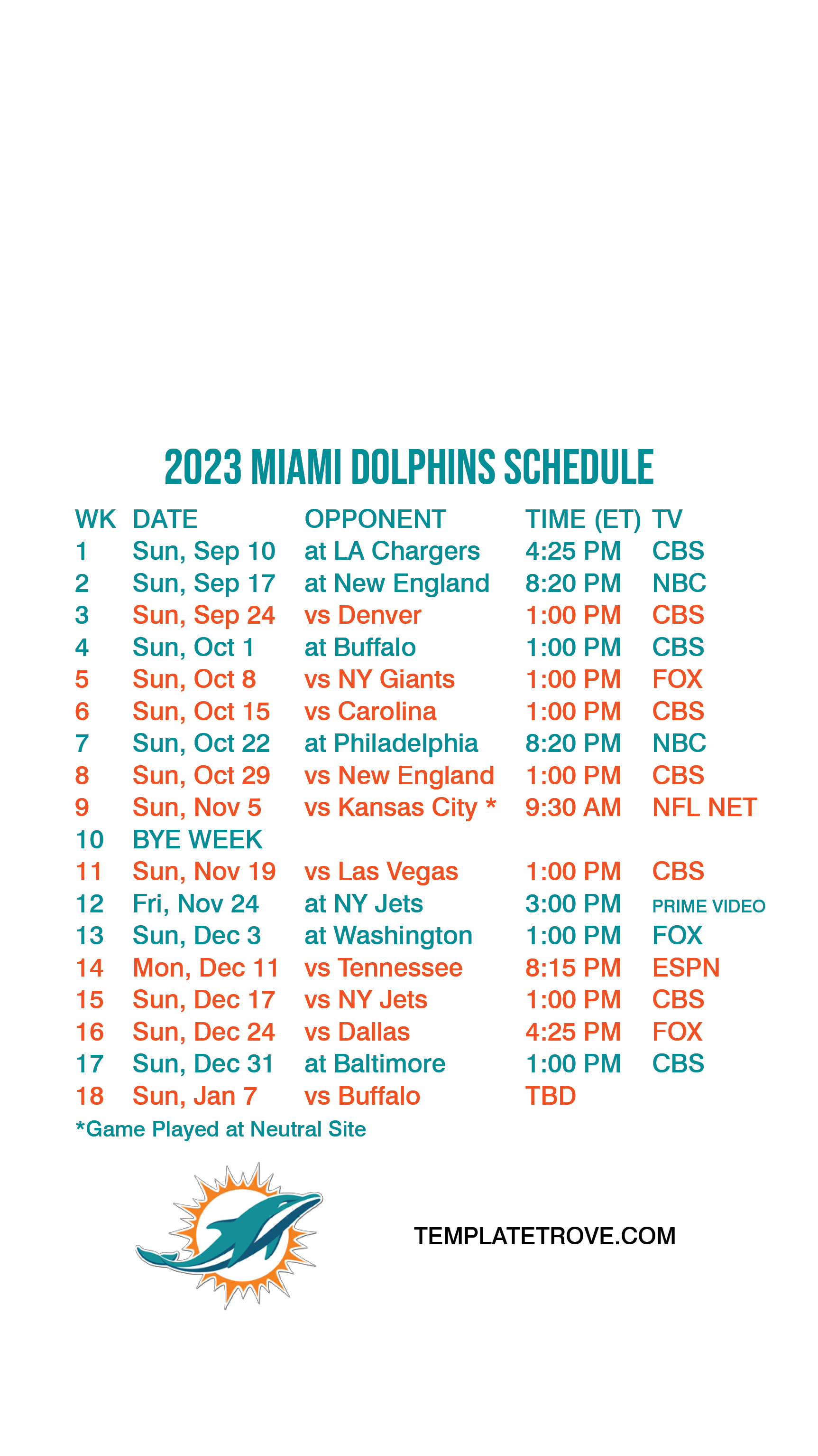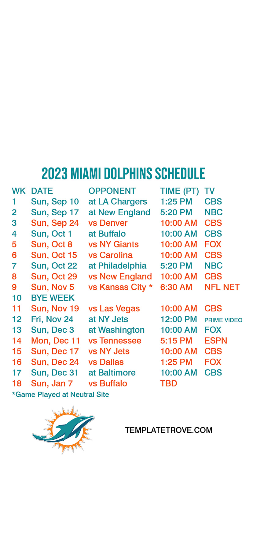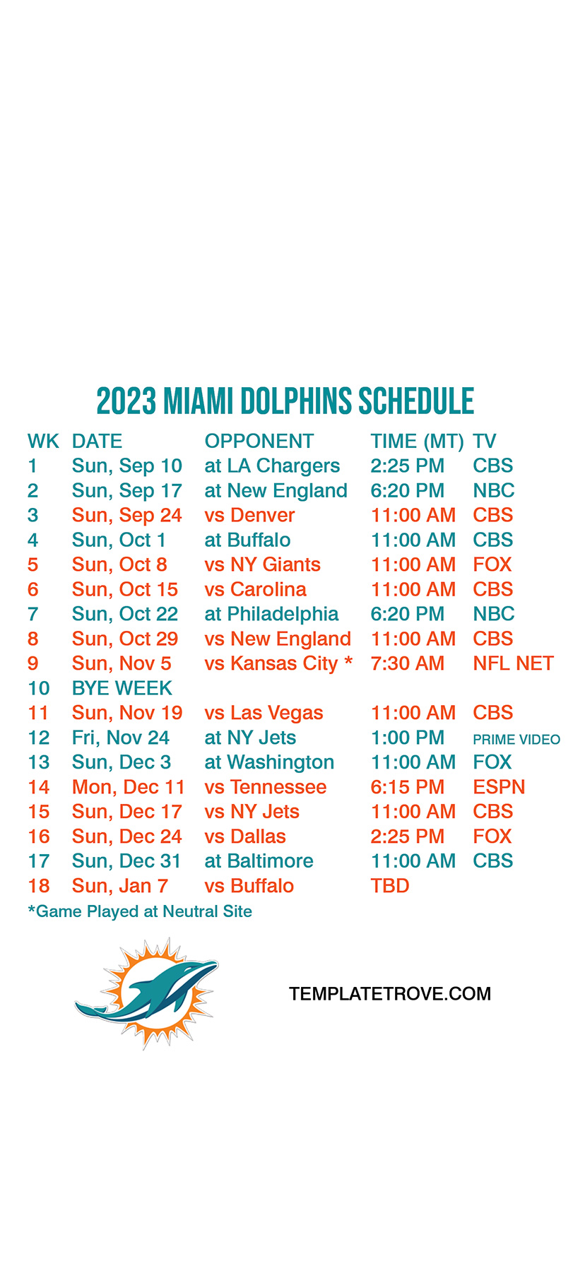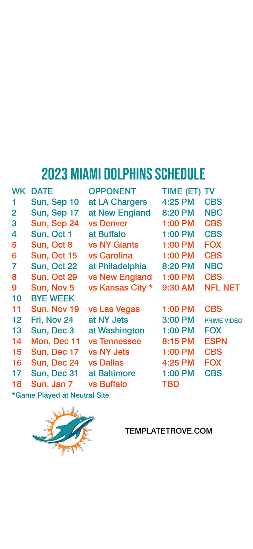 Miami Dolphins Lock Screen Schedule for iPhone 6, 7, 8 Plus