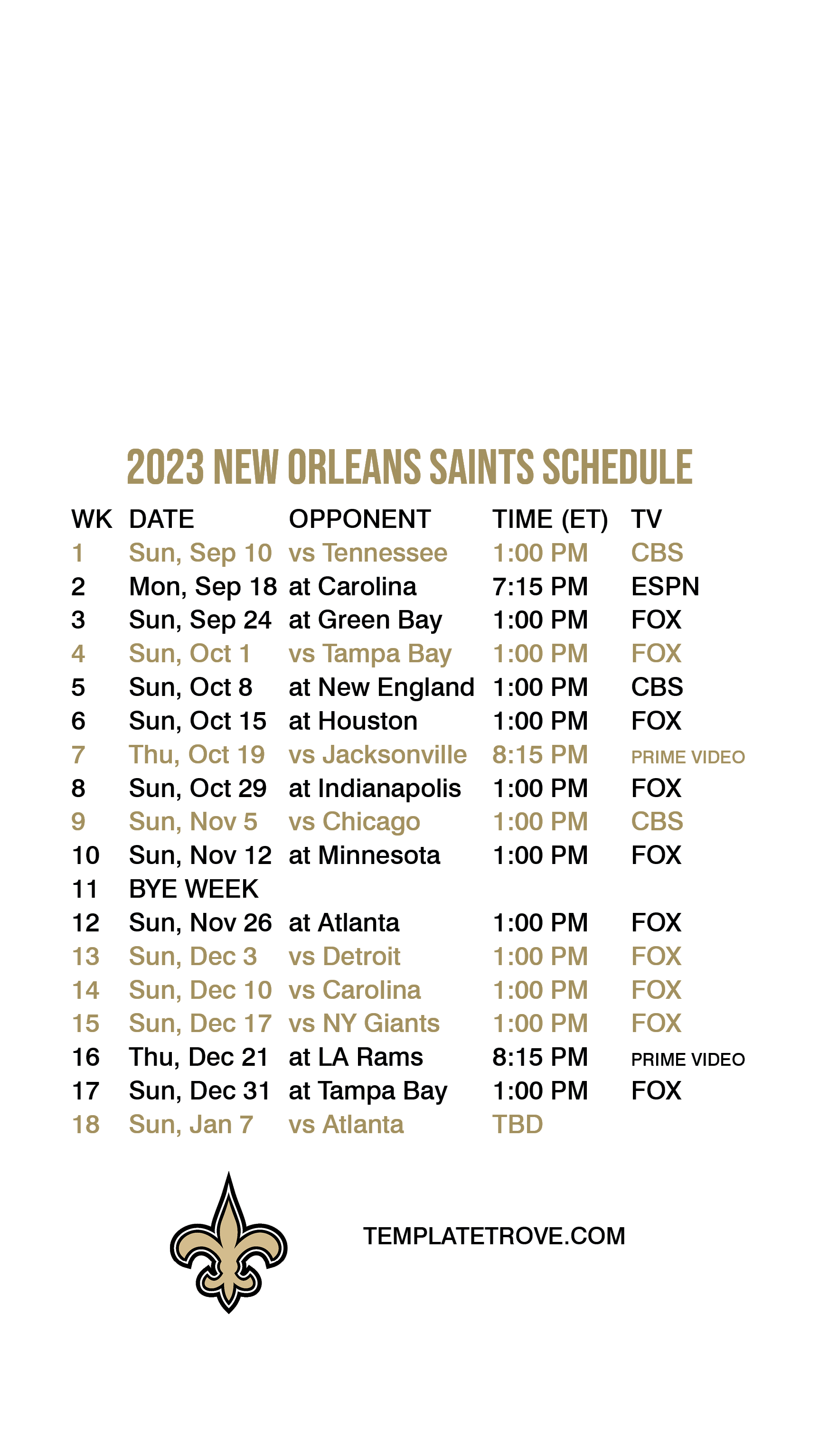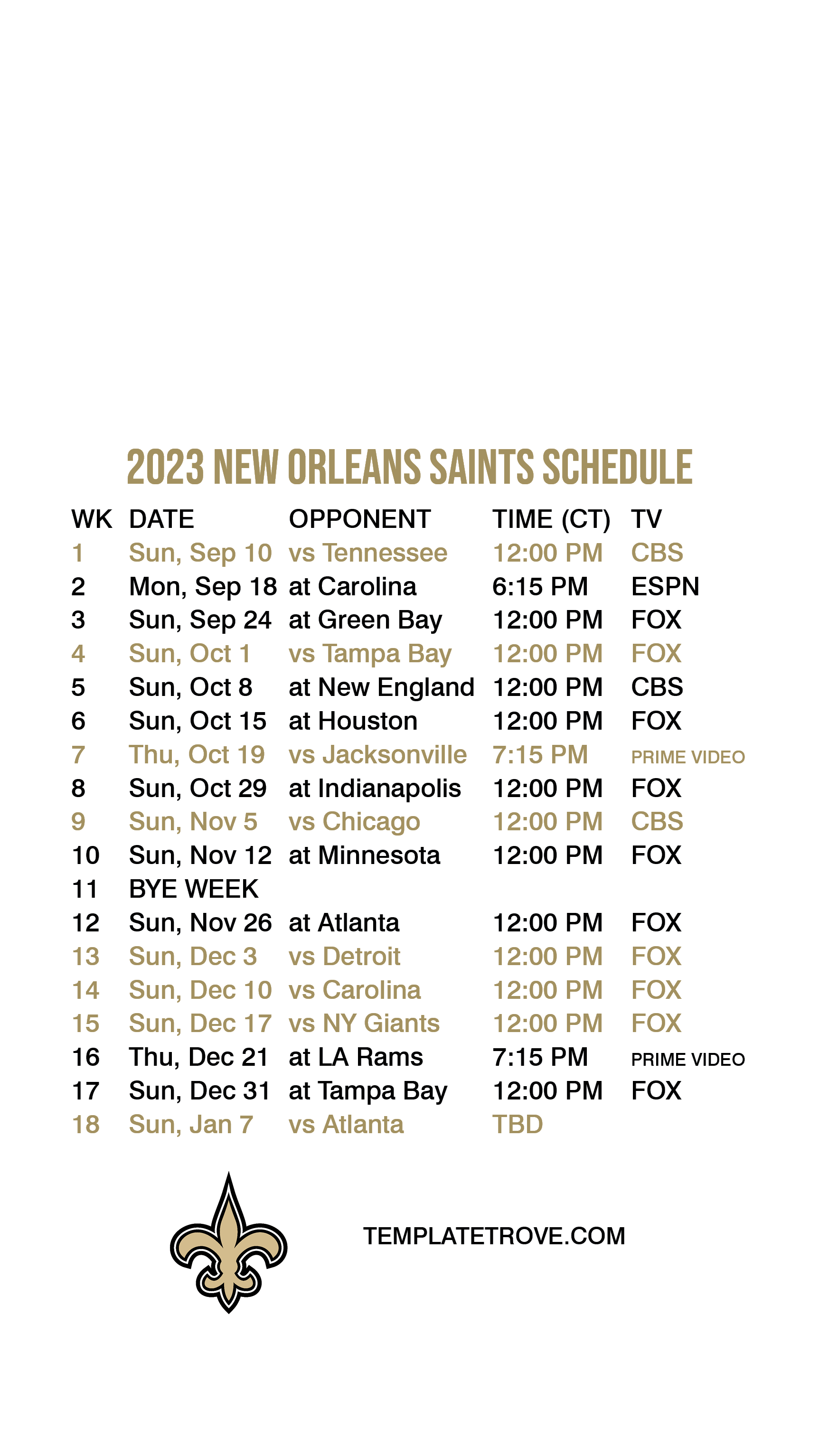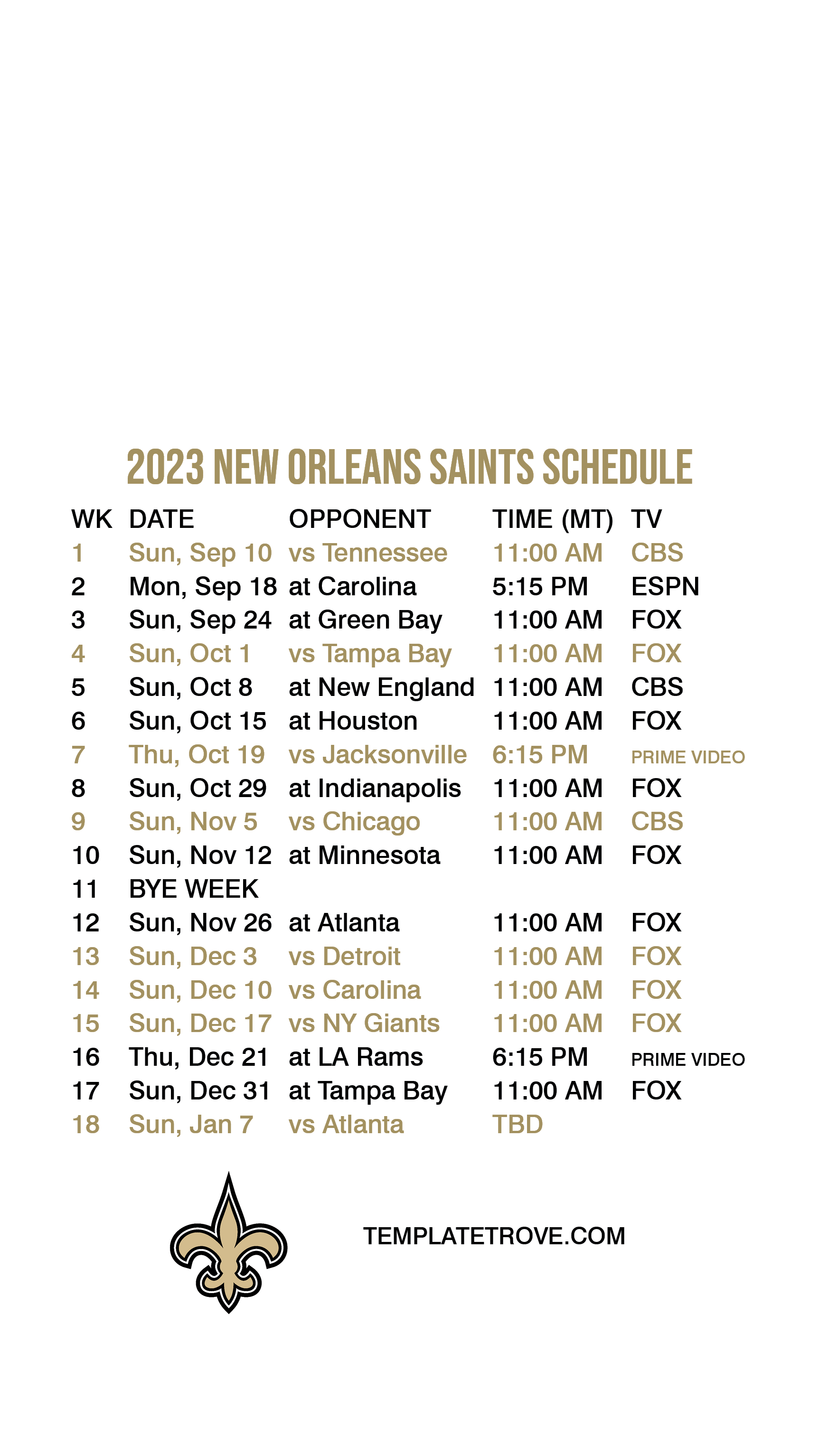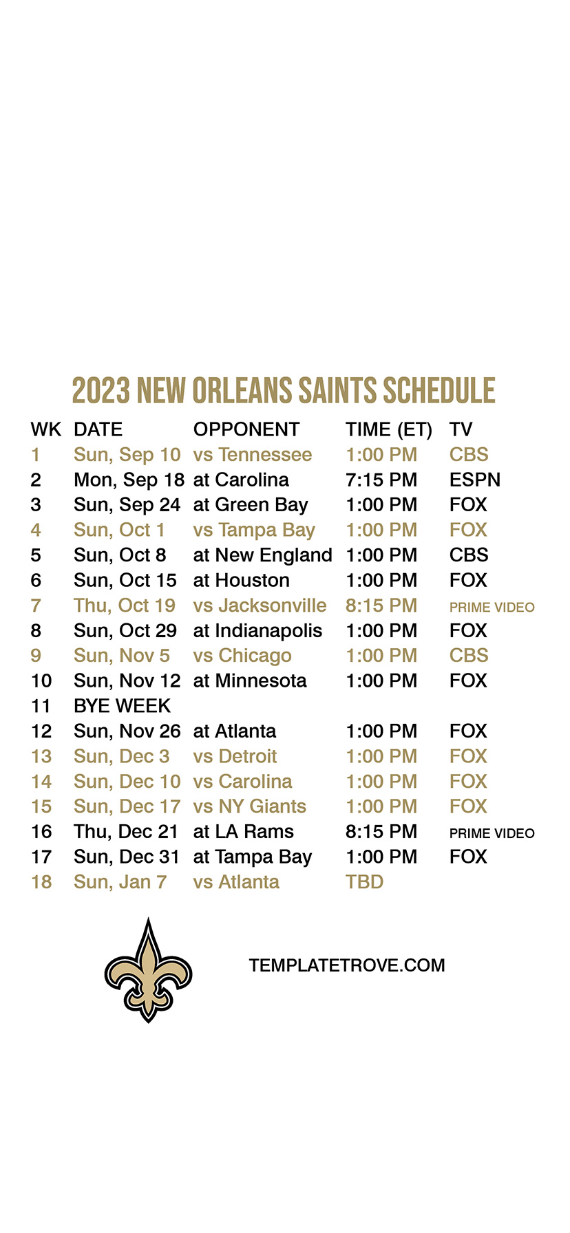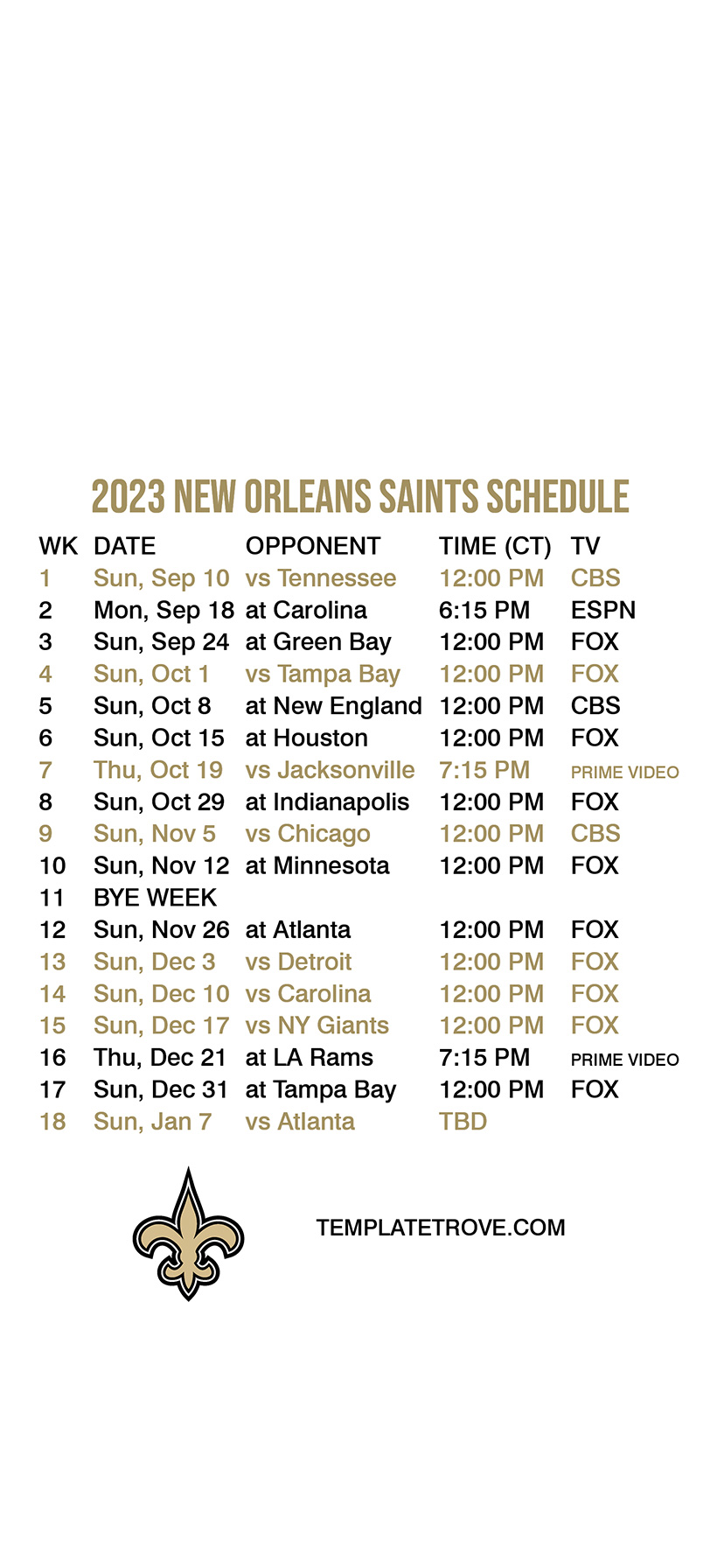 2023-24 New Orleans Saints Lock Screen Schedule