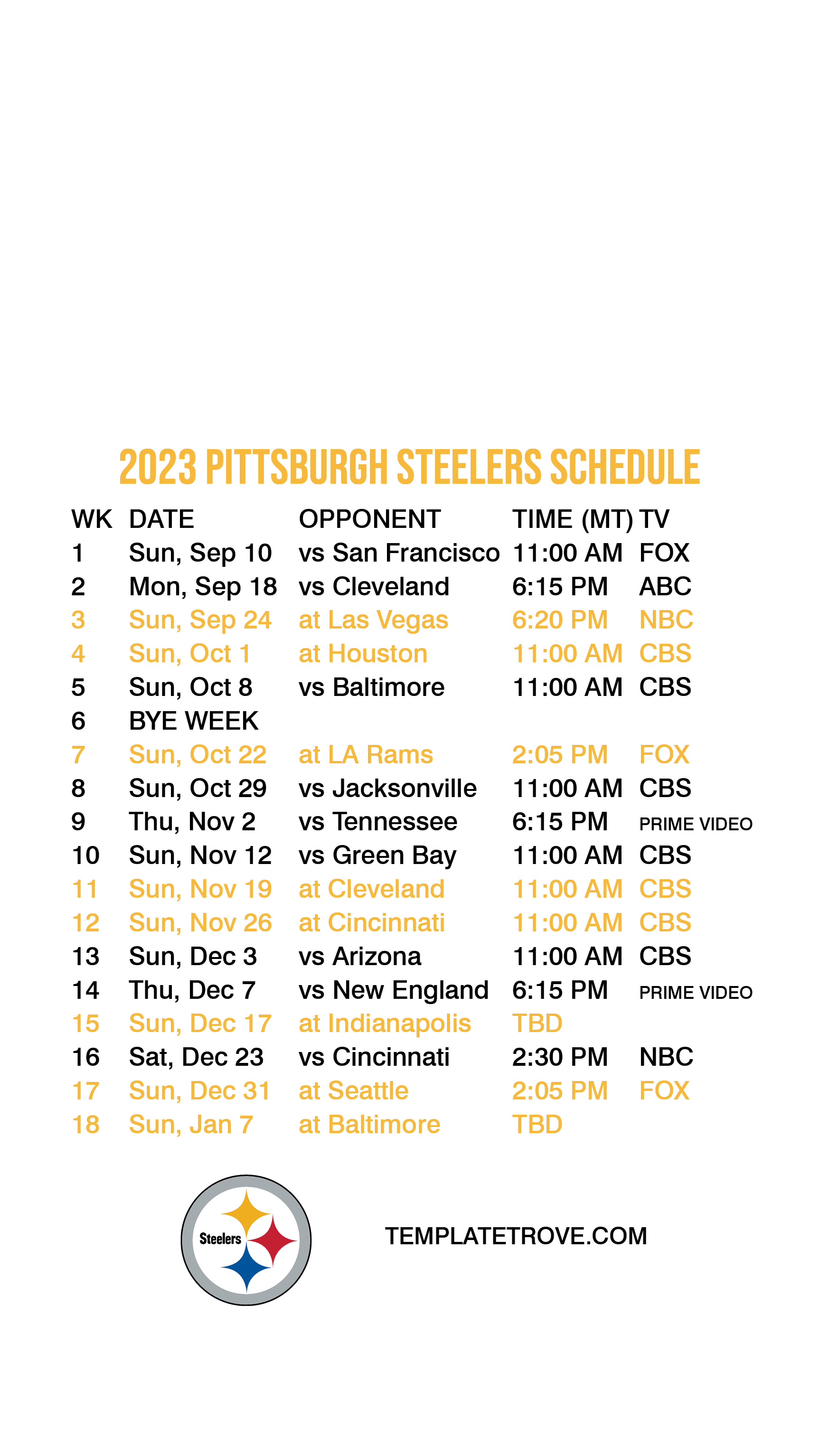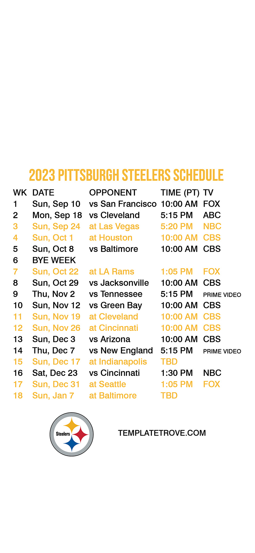 Pittsburgh Steelers Lock Screen Schedule for iPhone 6, 7, 8