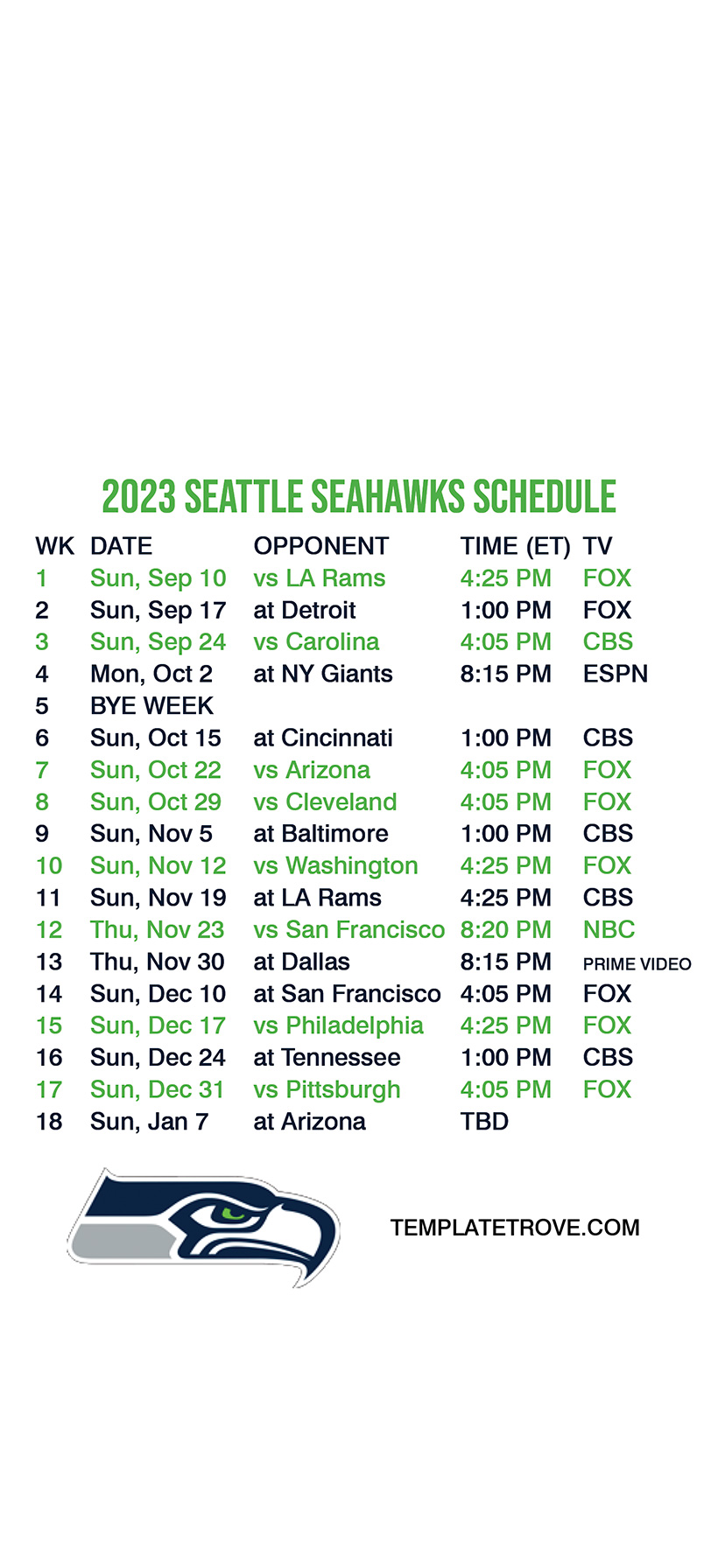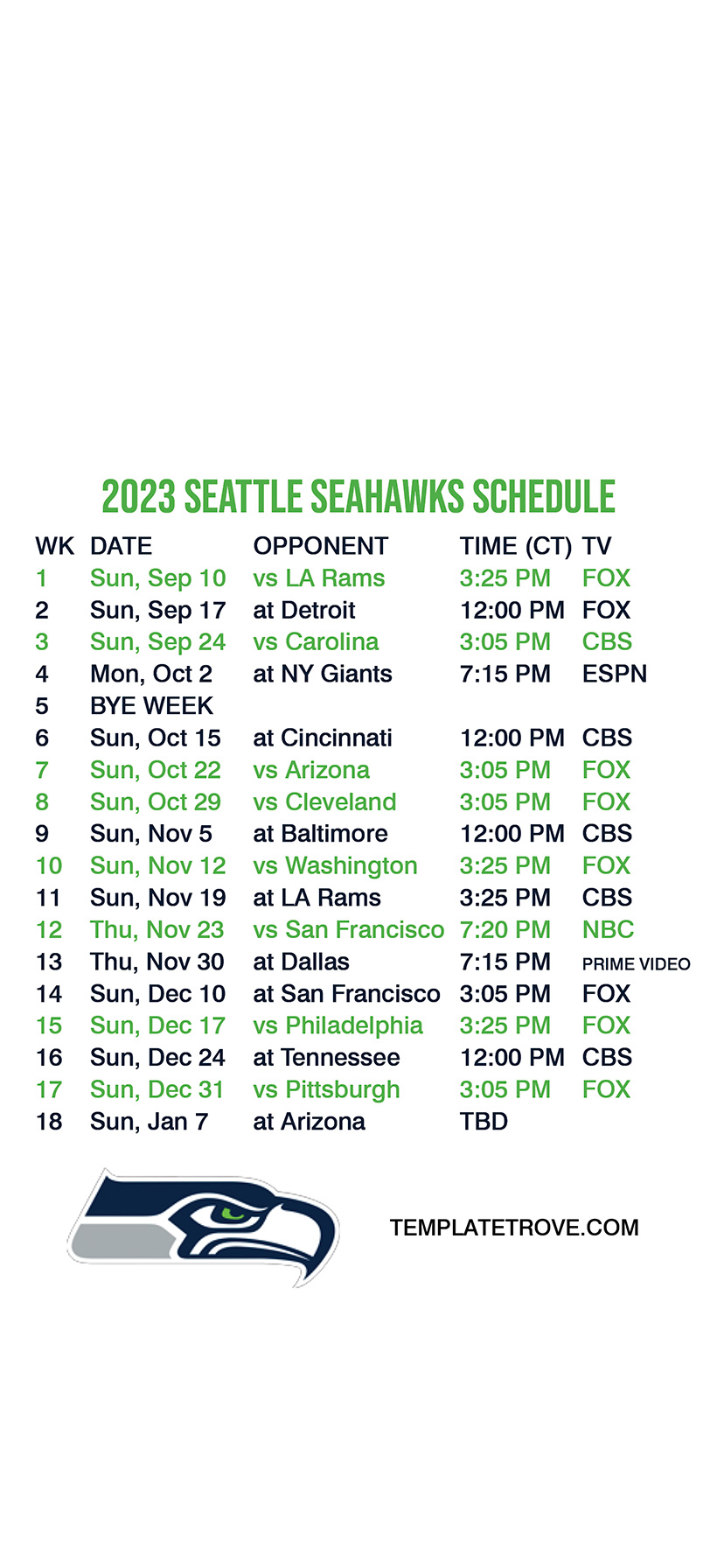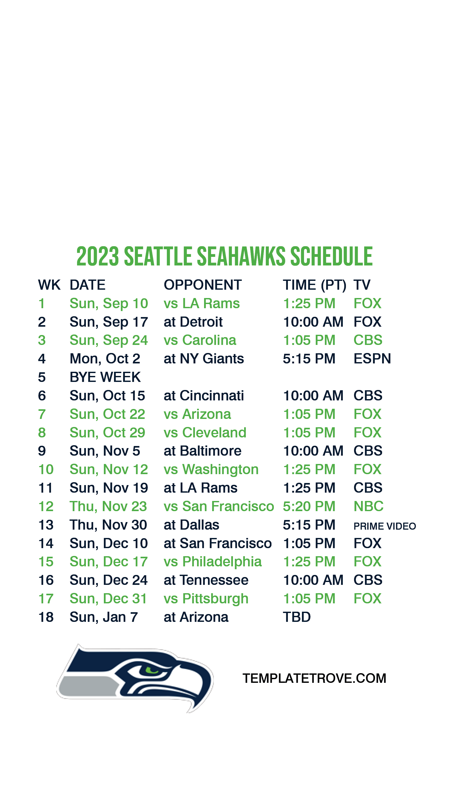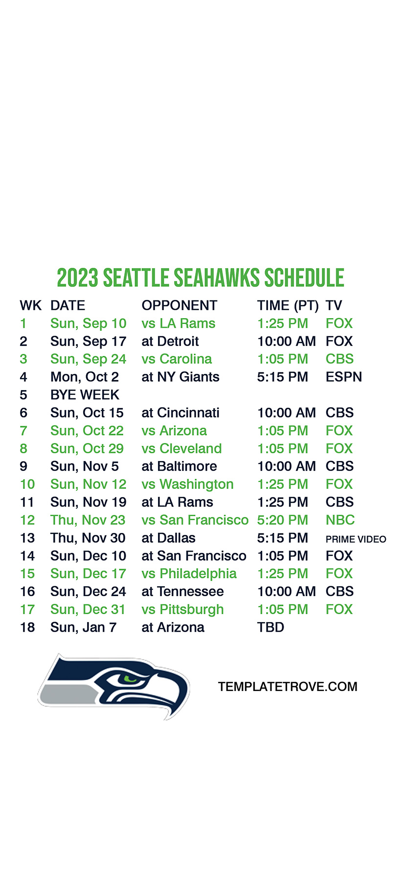 Seattle Seahawks Lock Screen Schedule for iPhone 6, 7, 8