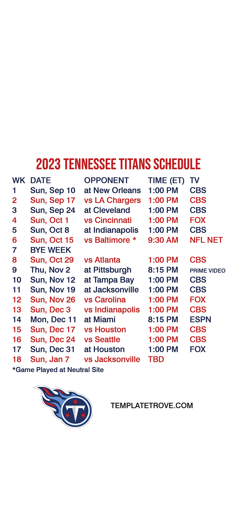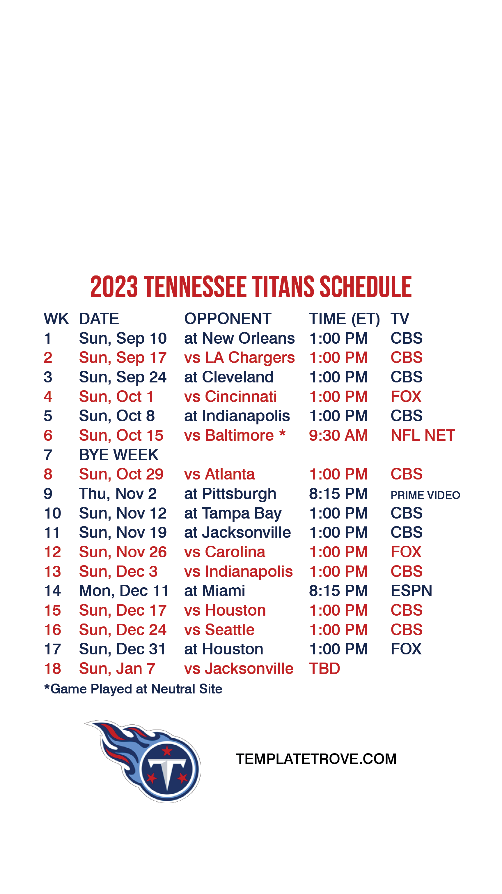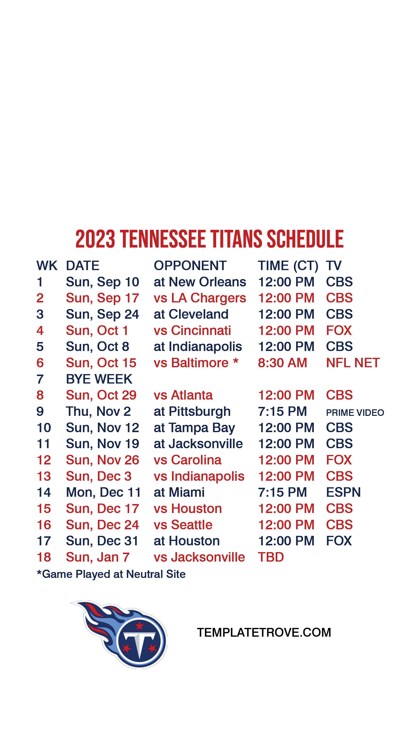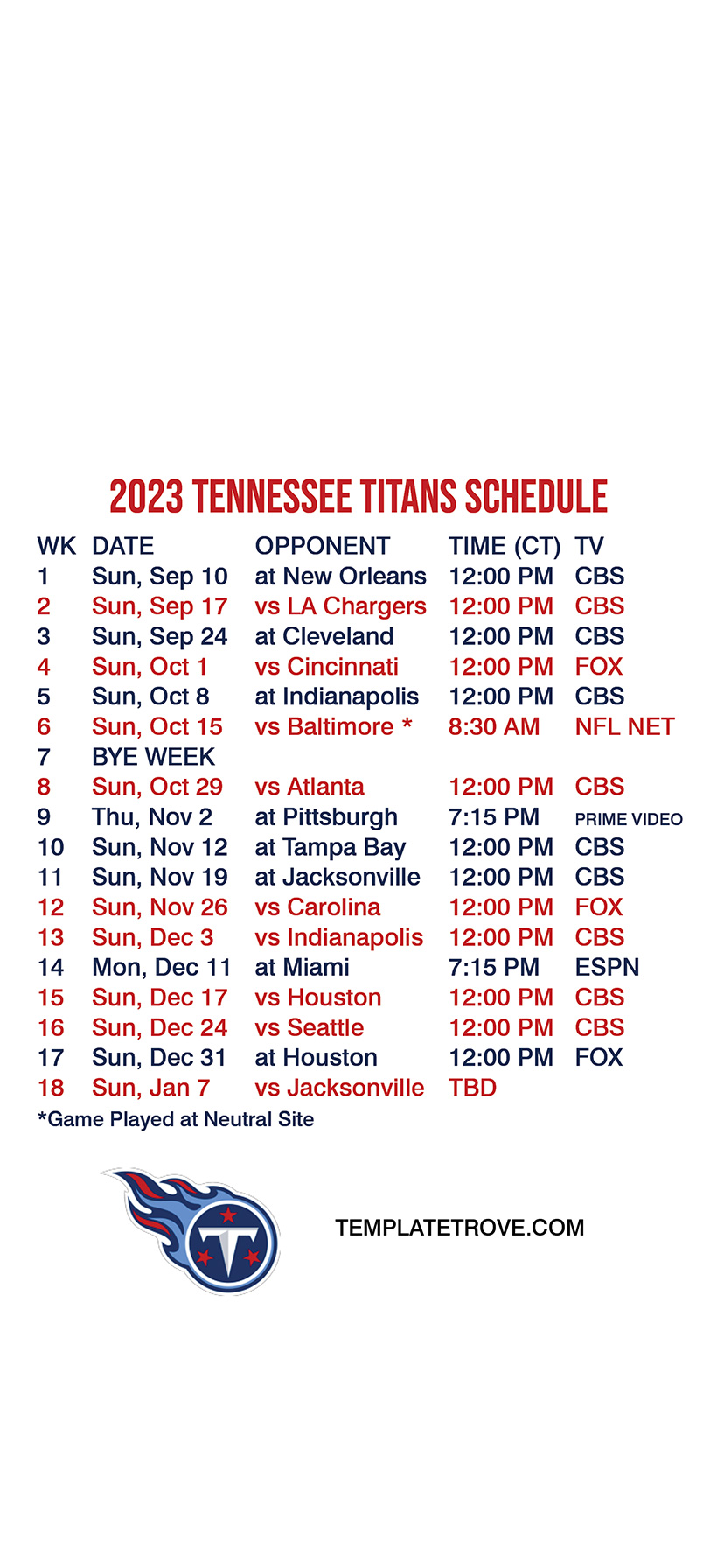 Tennessee Titans Lock Screen Schedule for iPhone 6, 7, 8