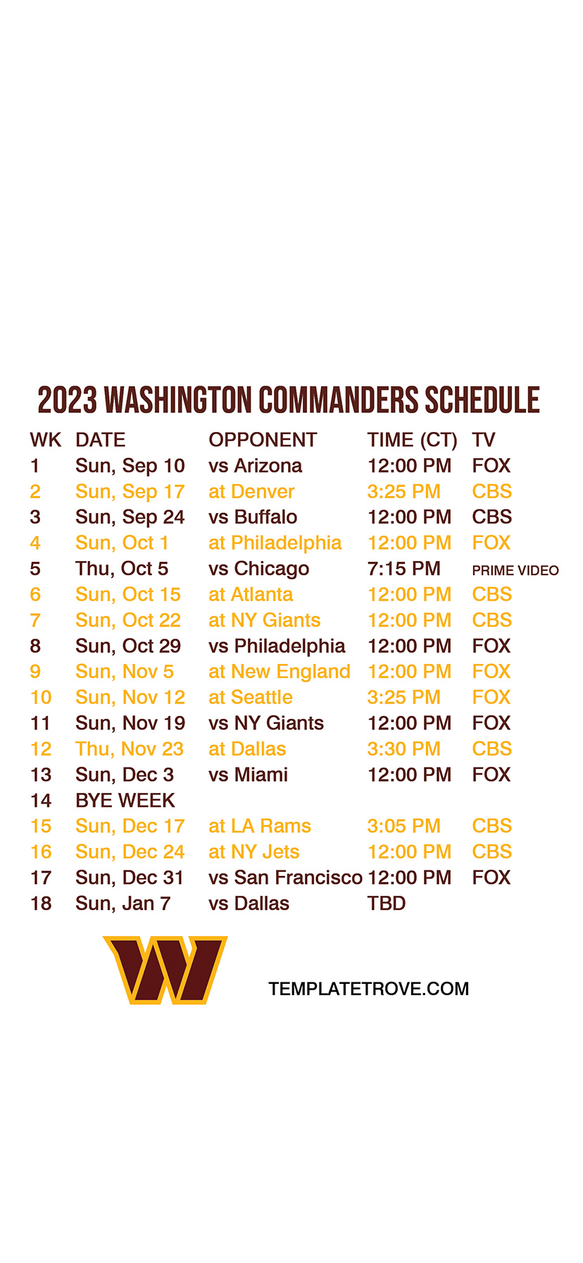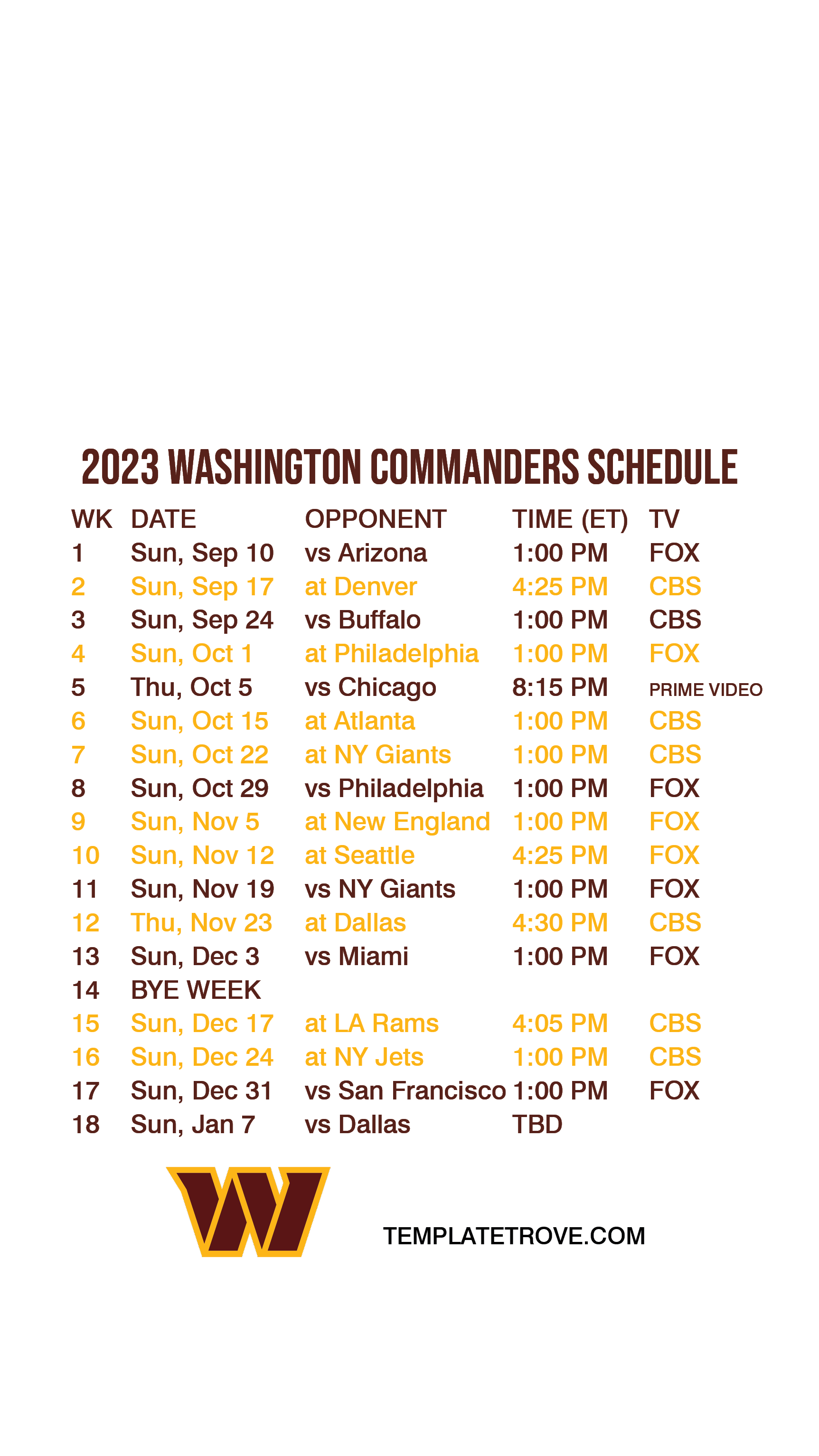 Washington Football Team Lock Screen Schedule for iPhone XR,