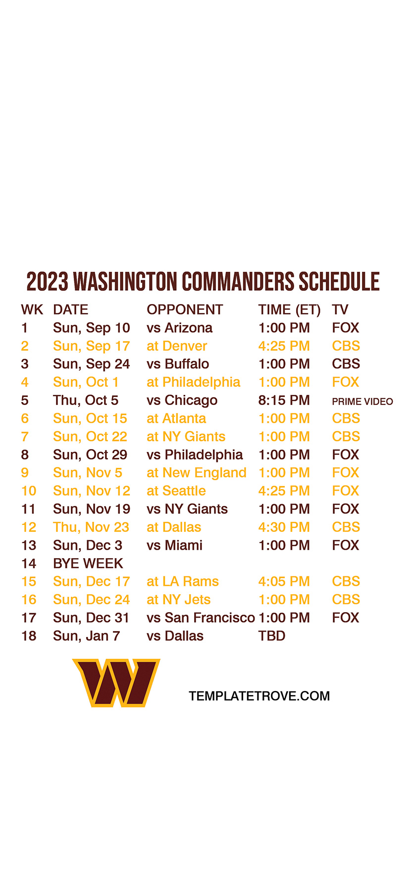 Washington Football Team Lock Screen Schedule for iPhone 6,