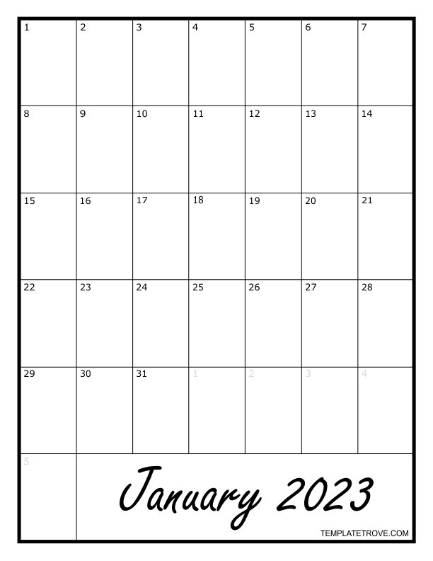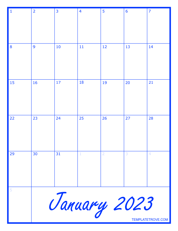 2023 Blank Monthly Calendar