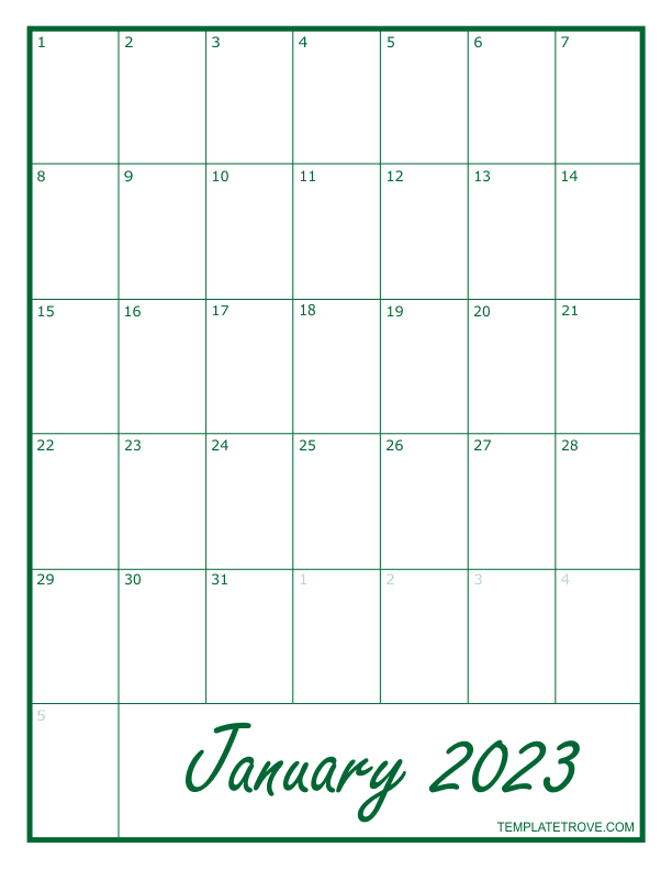 2023 Blank Monthly Calendar - Green