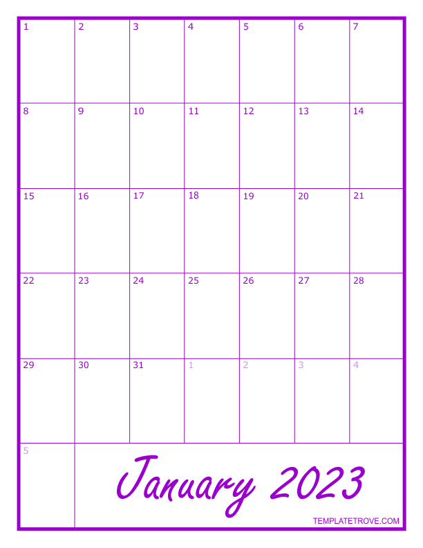 2023 Blank Monthly Calendar - Purple