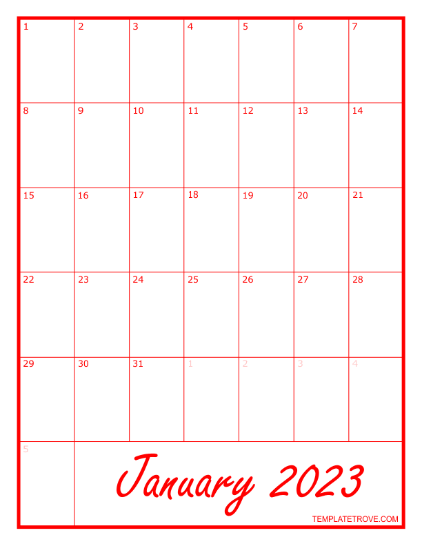 2023 Blank Monthly Calendar - Red