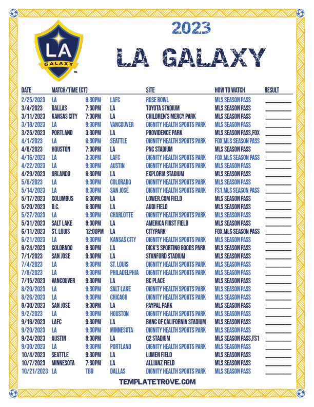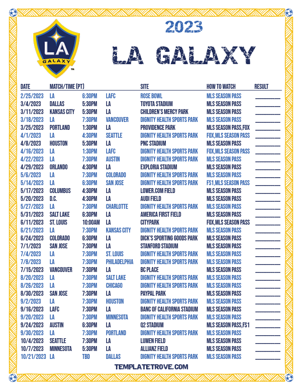Keep up with the LA Galaxy soccer team in the 2023 season with our free printable regular season schedules.