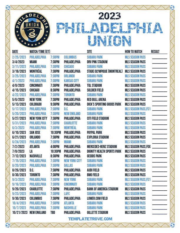 Keep up with the Philadelphia Union soccer team in the 2023 season with our free printable regular season schedules.
