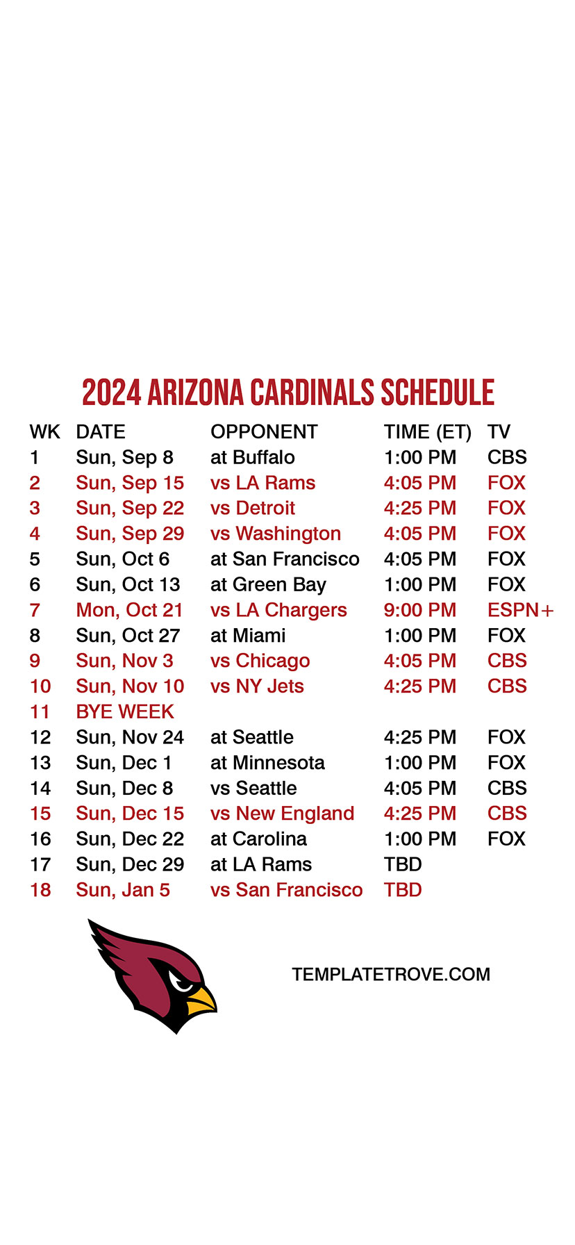 2024-25 Arizona Cardinals Lock Screen Schedule