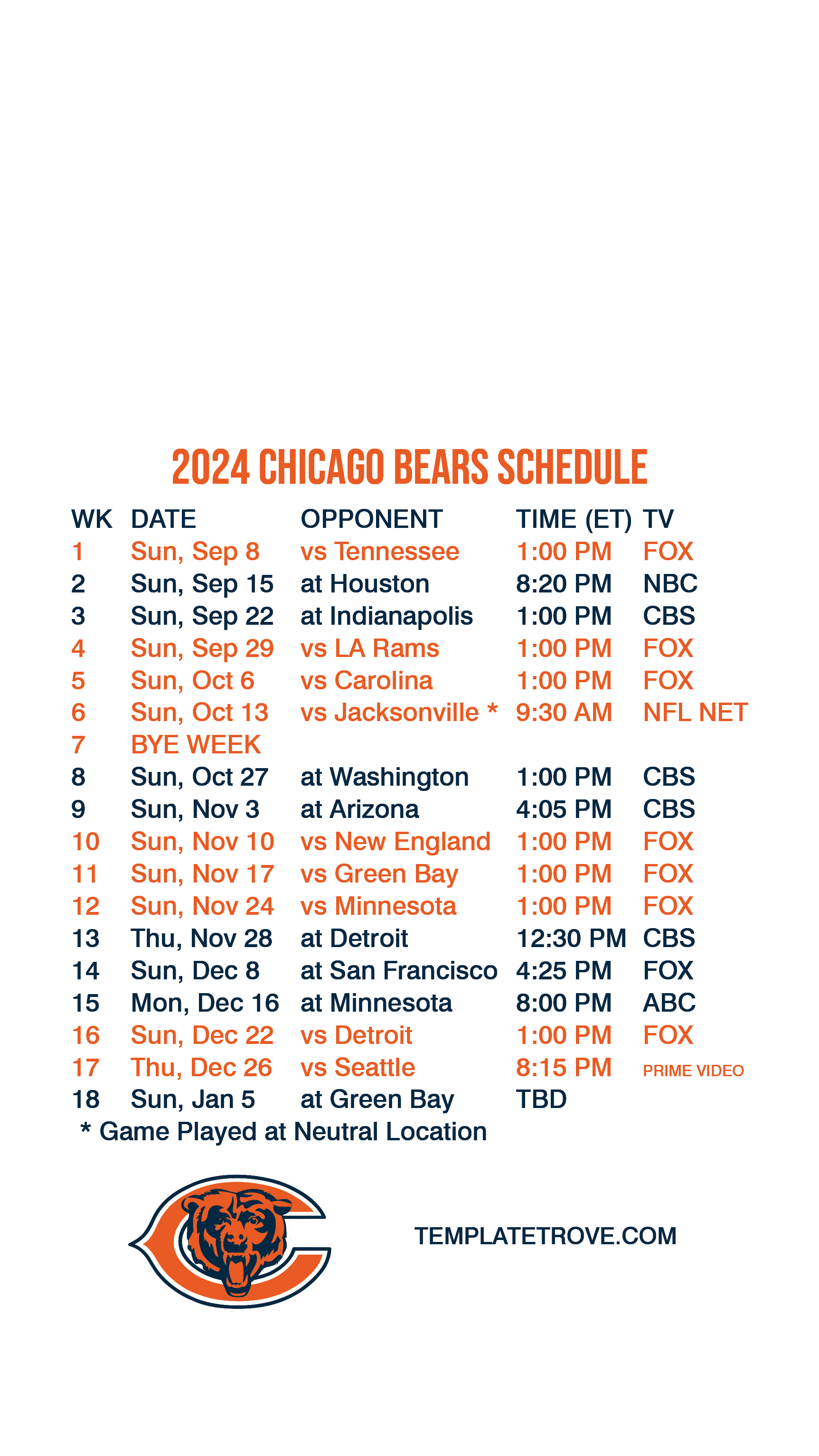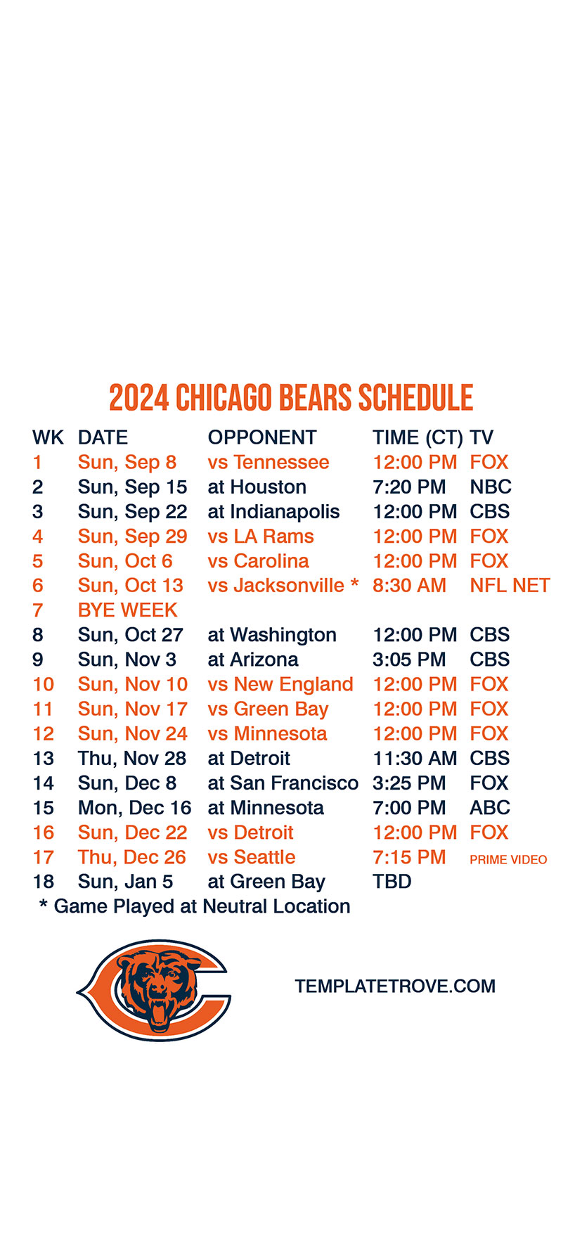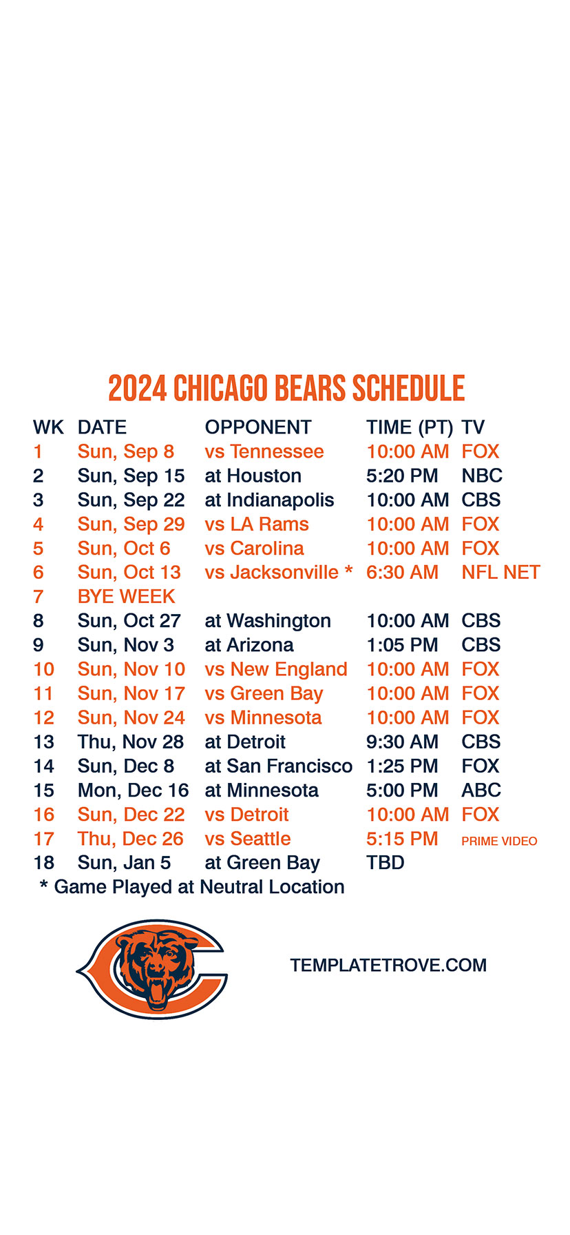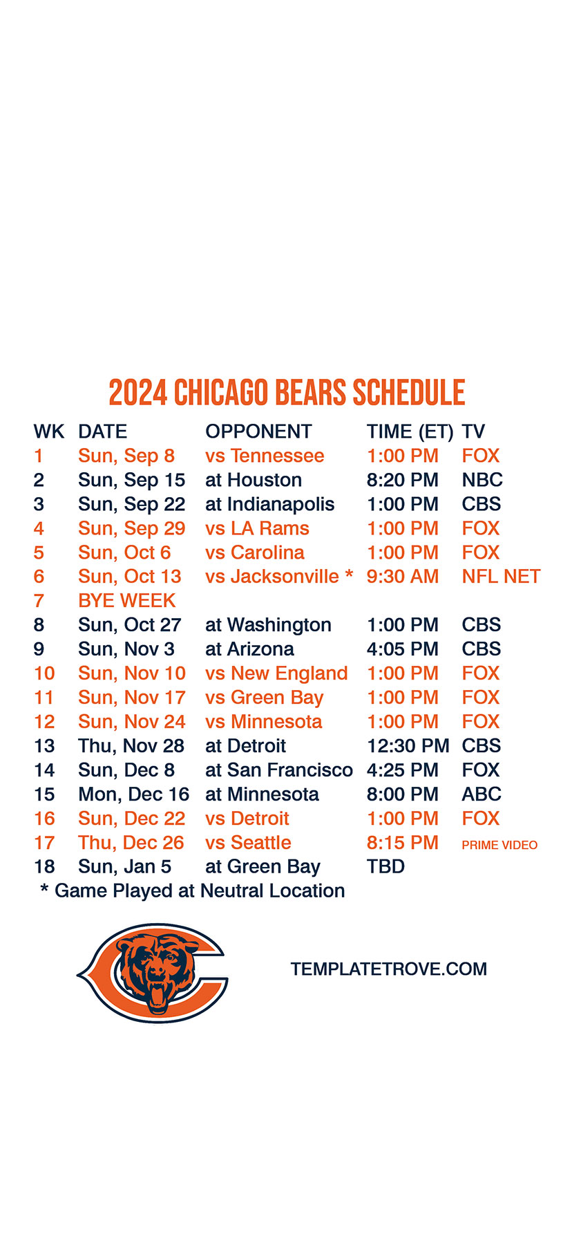 wallpaper you can have the Bears schedule available every time you