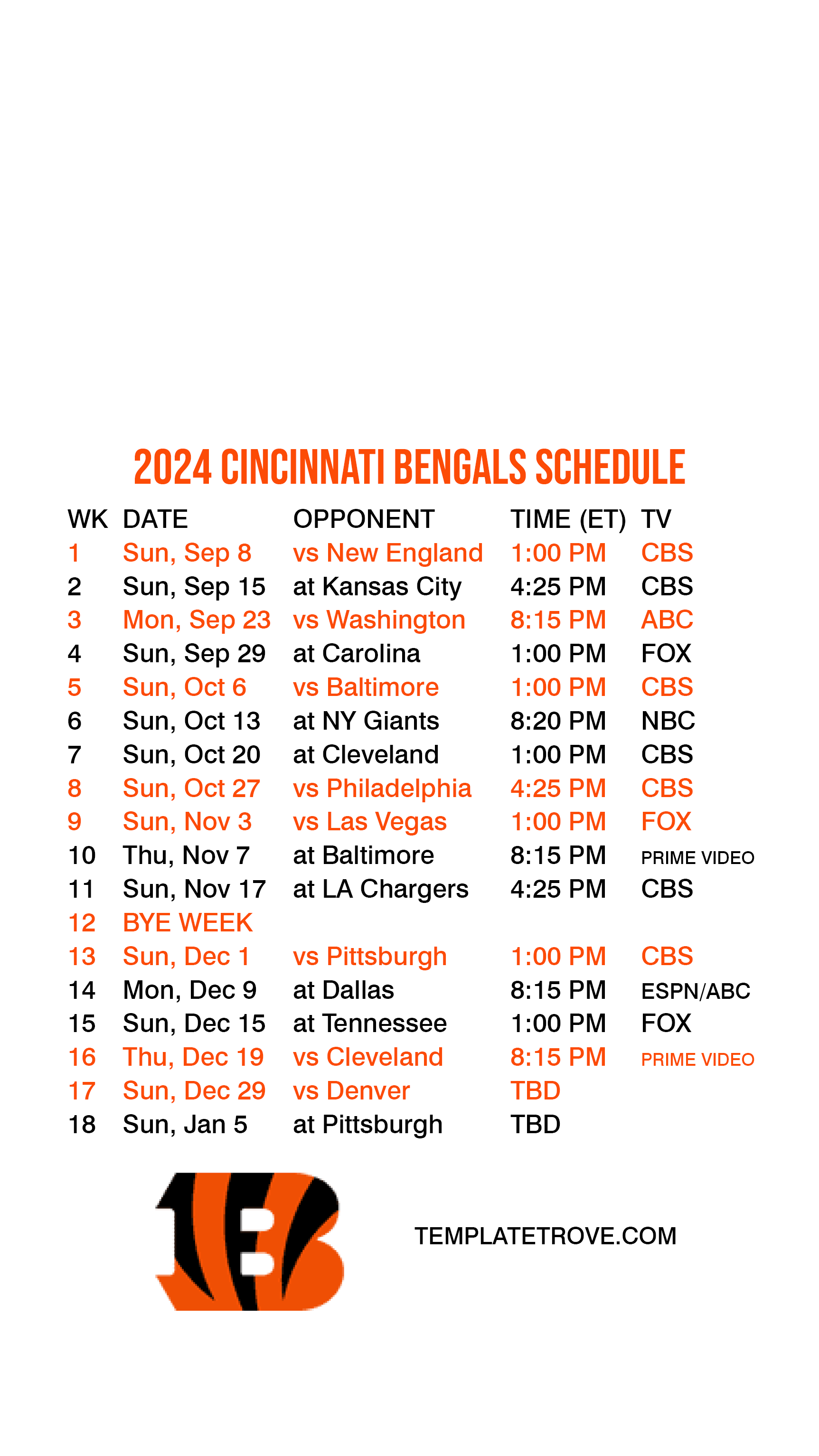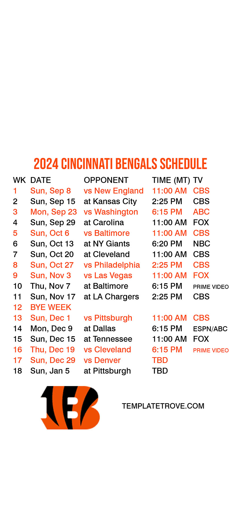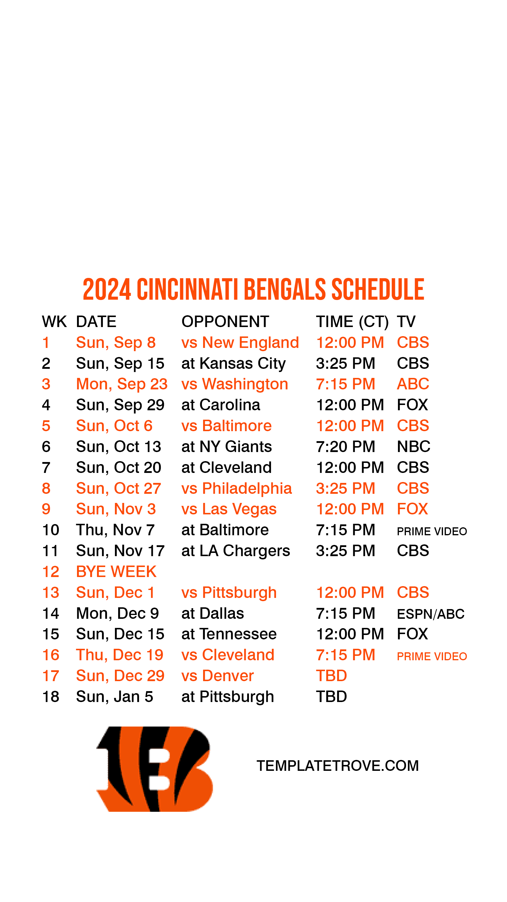 2024-25 Cincinnati Bengals Lock Screen Schedule