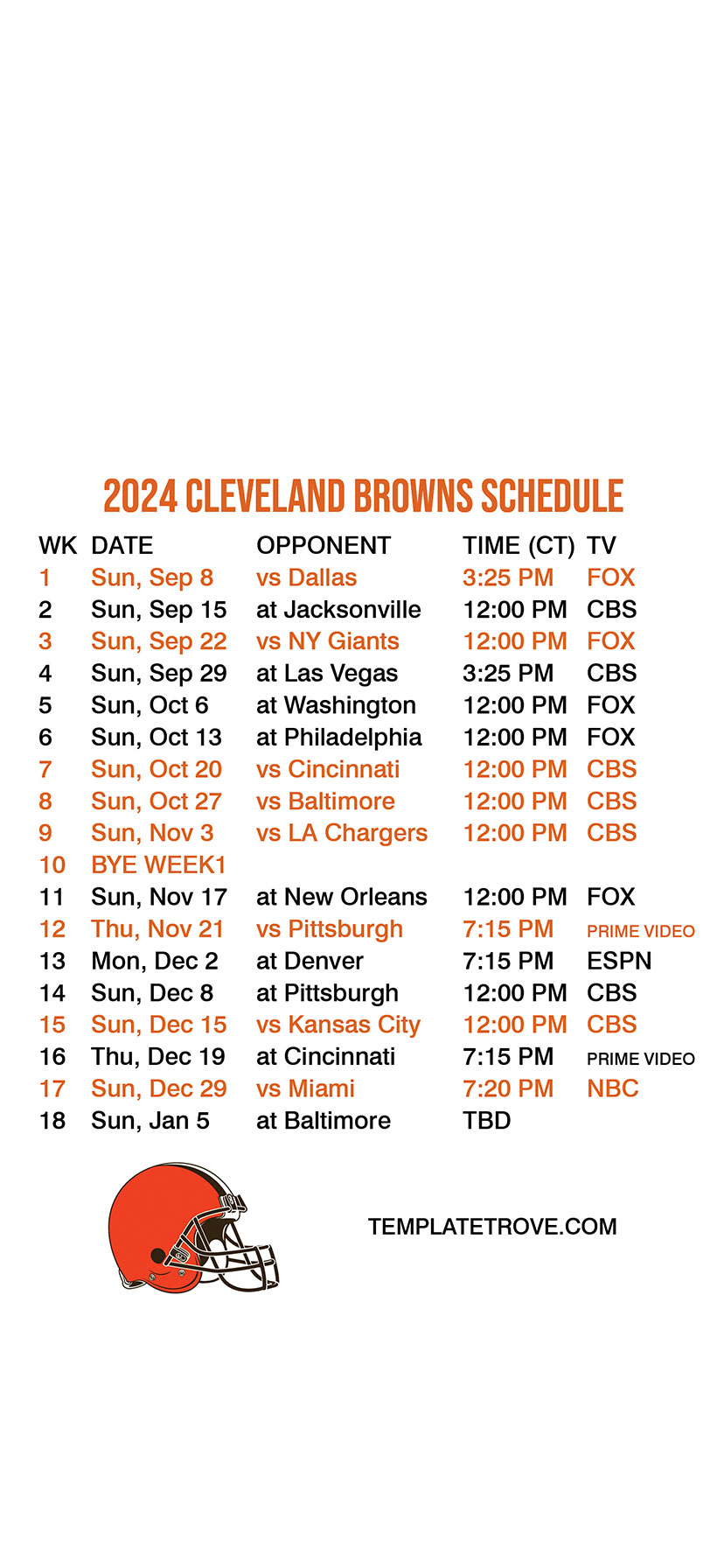 Cleveland Browns Lock Screen Schedule for iPhone 6, 7, 8