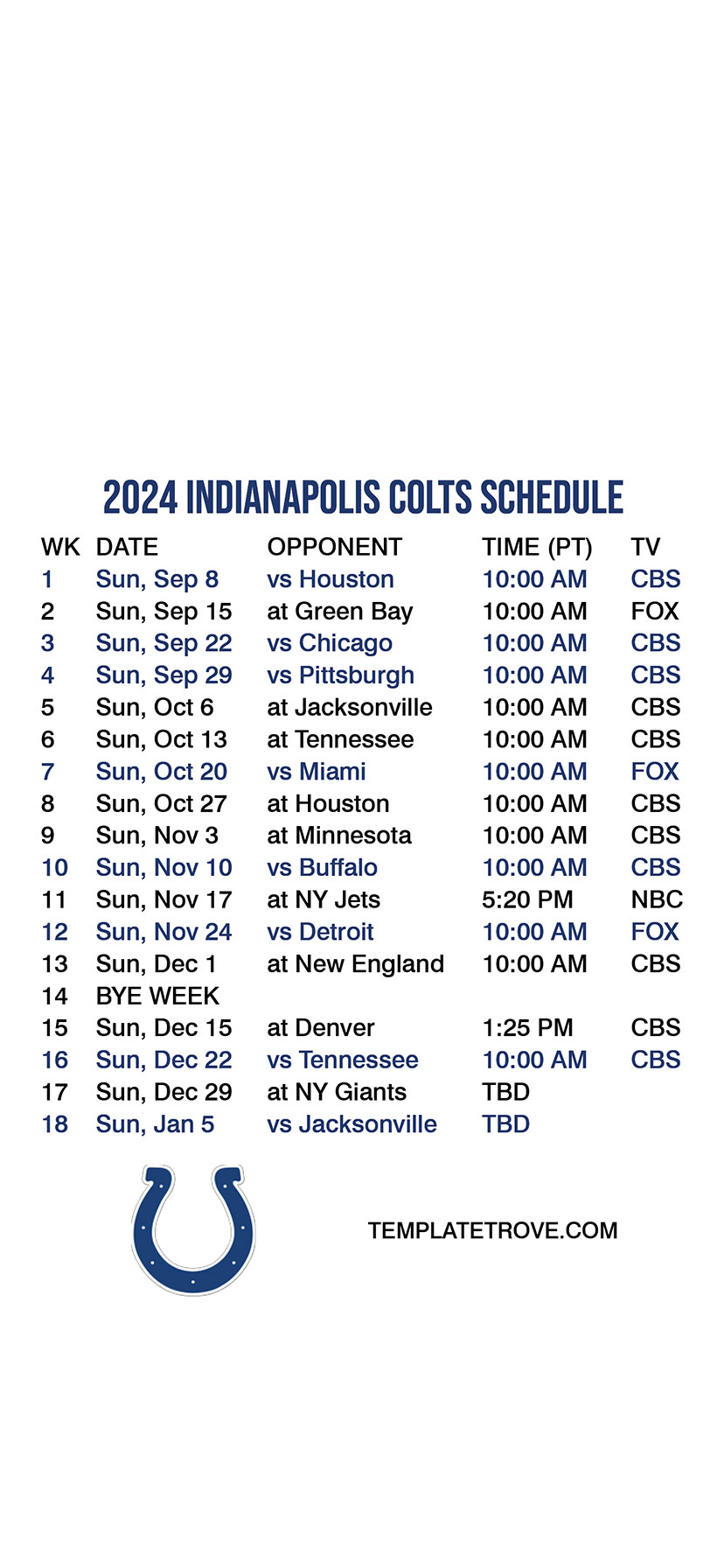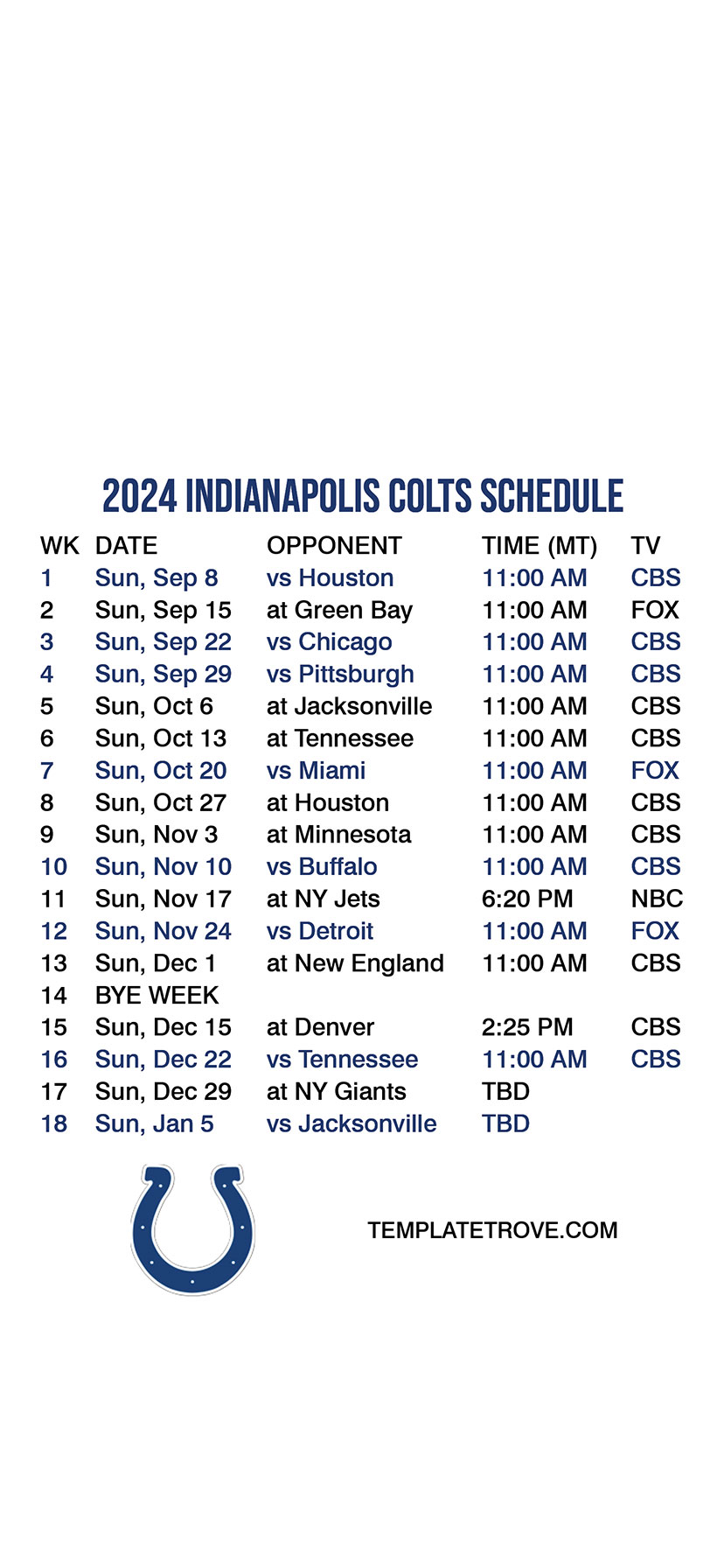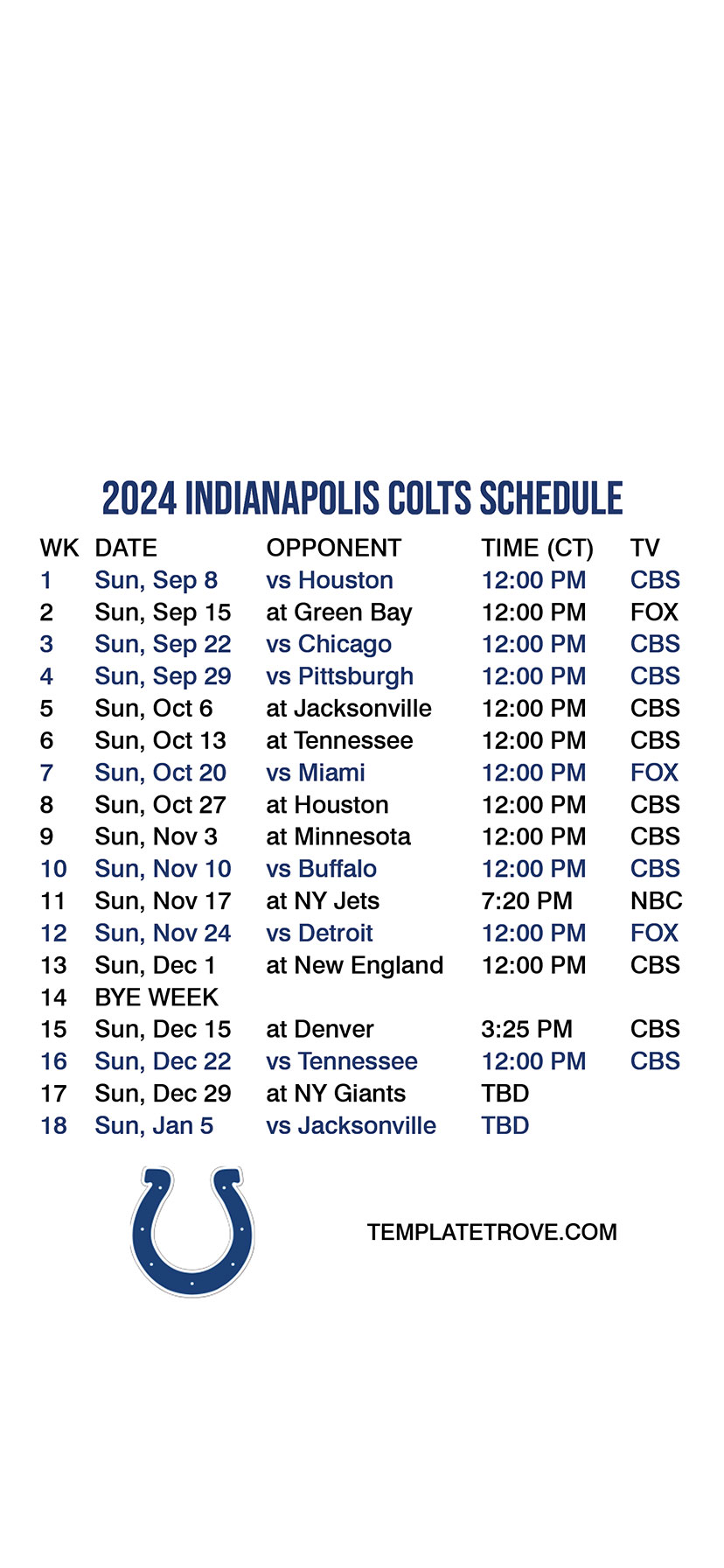 Indianapolis Colts Lock Screen Schedule for iPhone 6, 7, 8