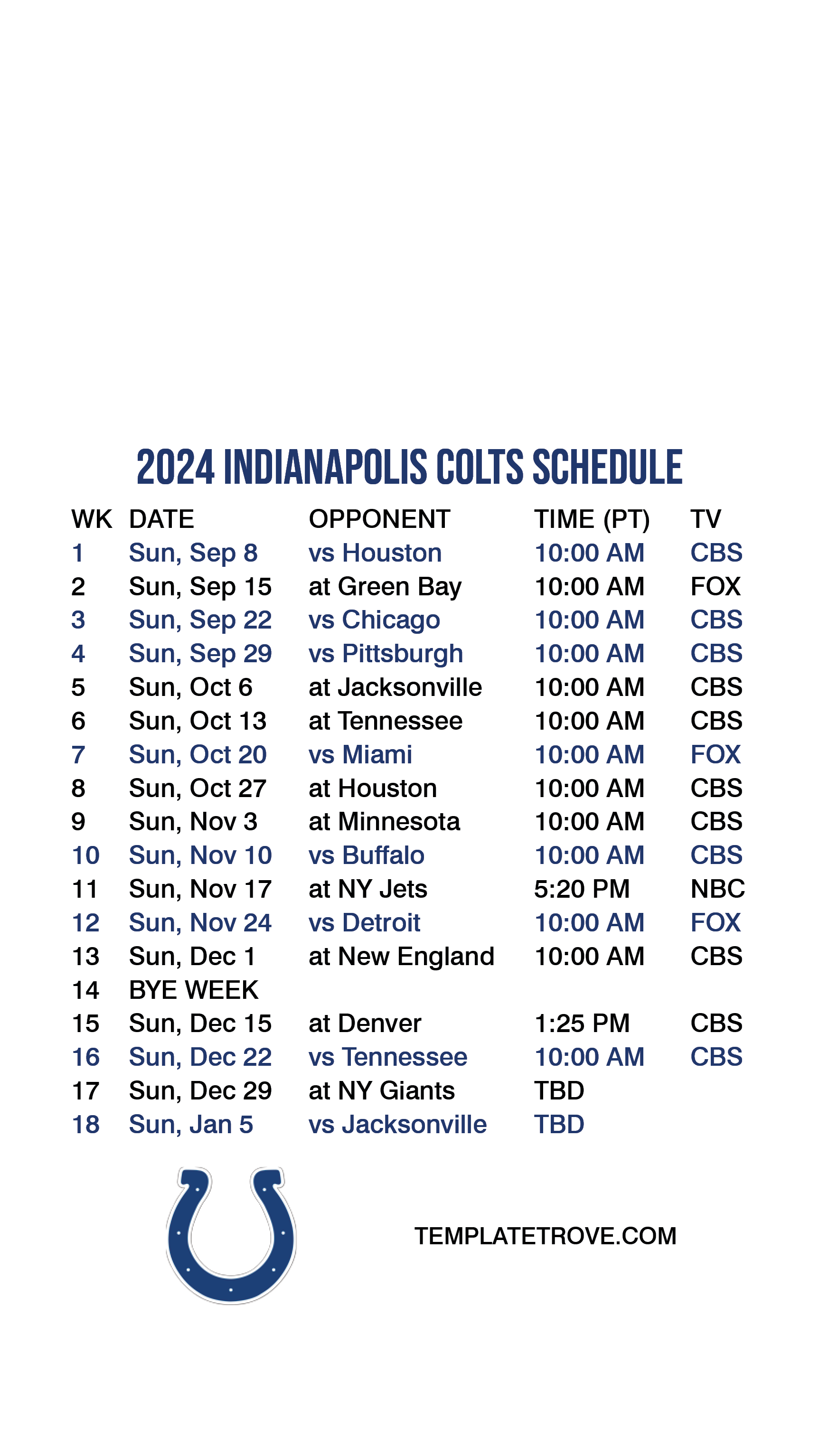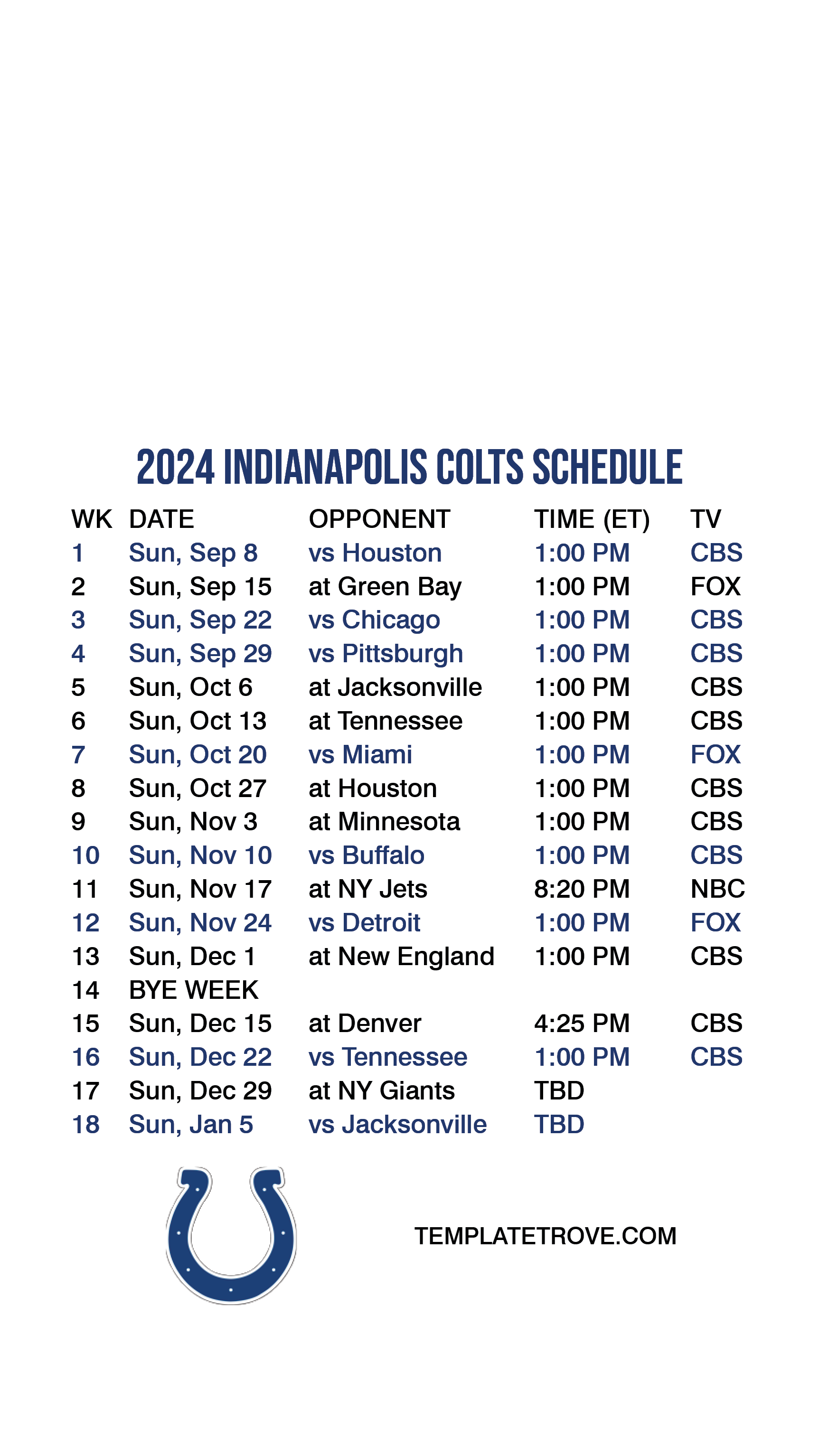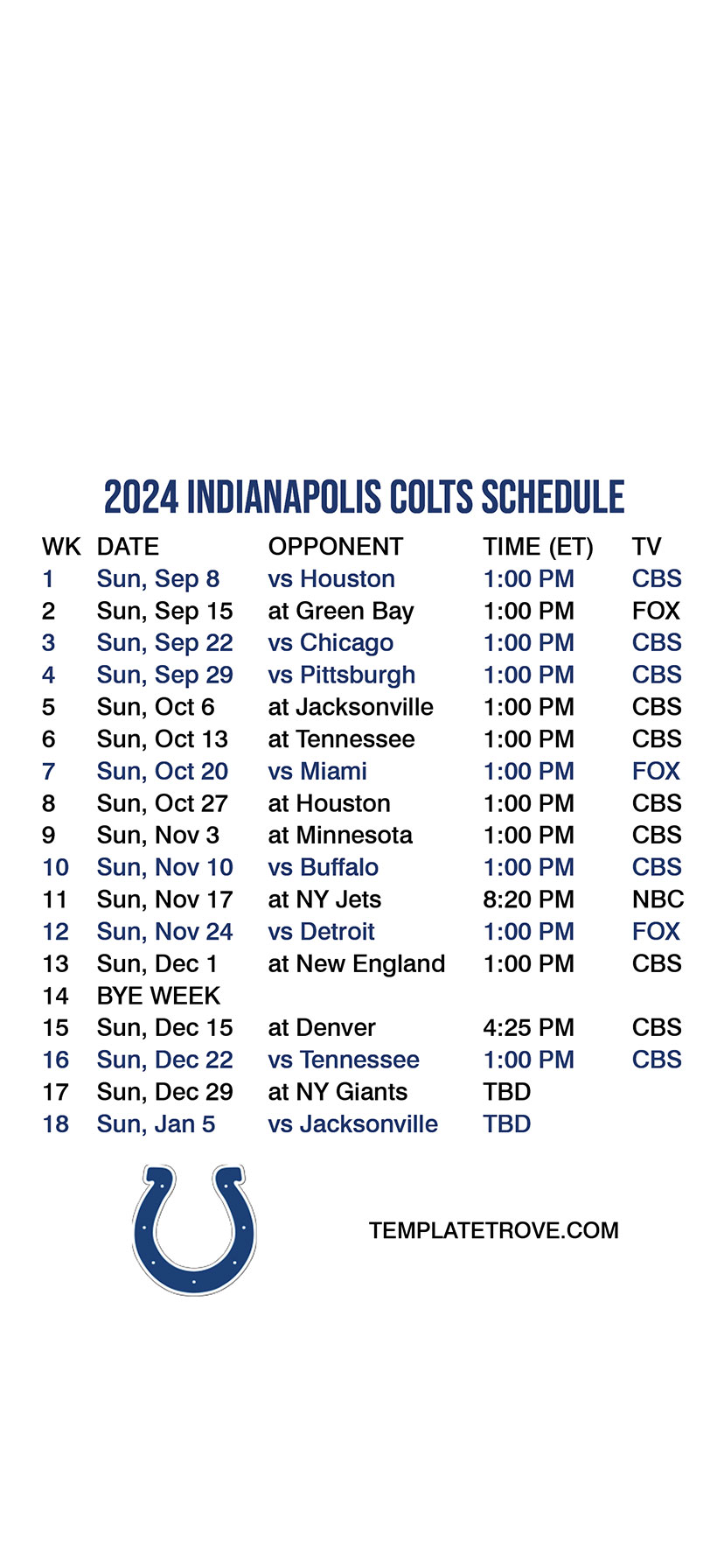 Indianapolis Colts Lock Screen Schedule for iPhone 6, 7, 8