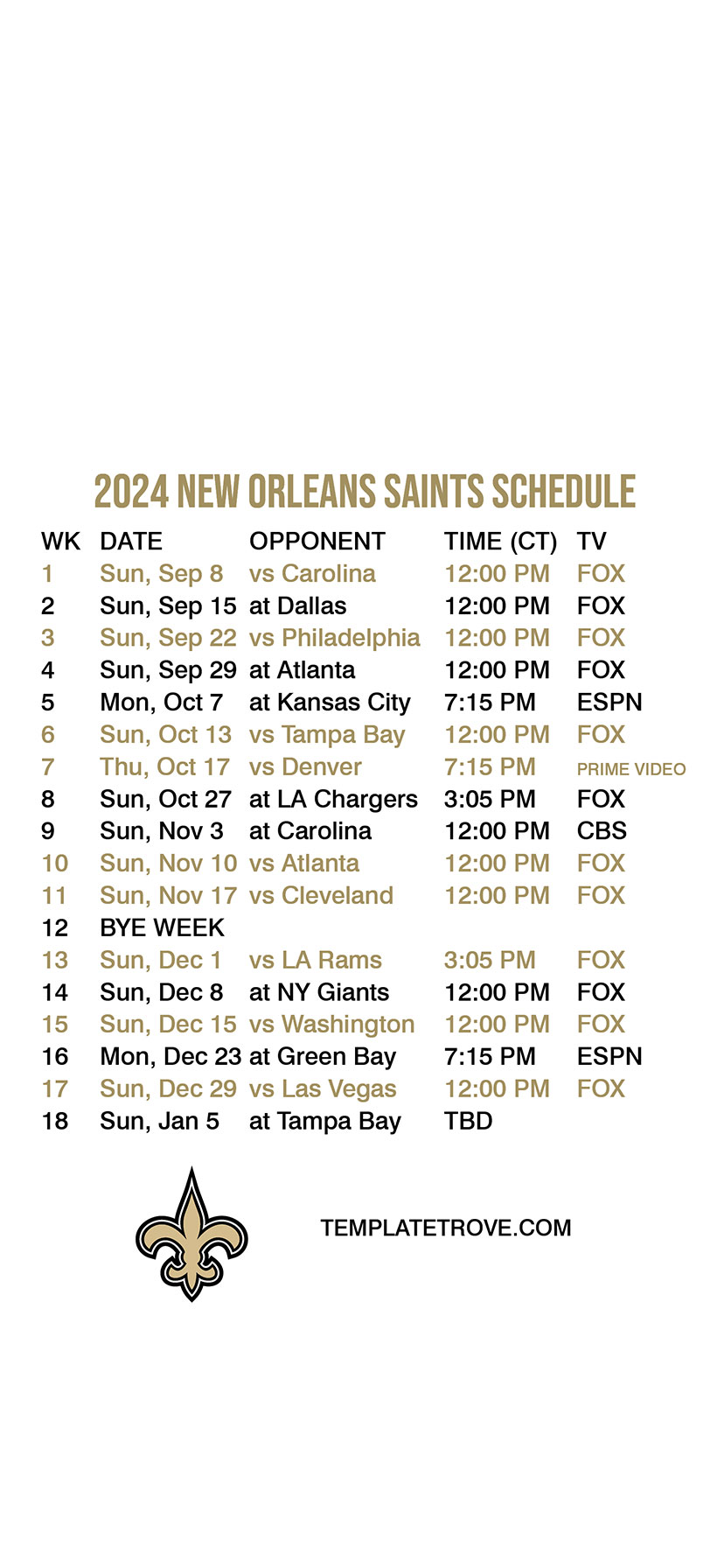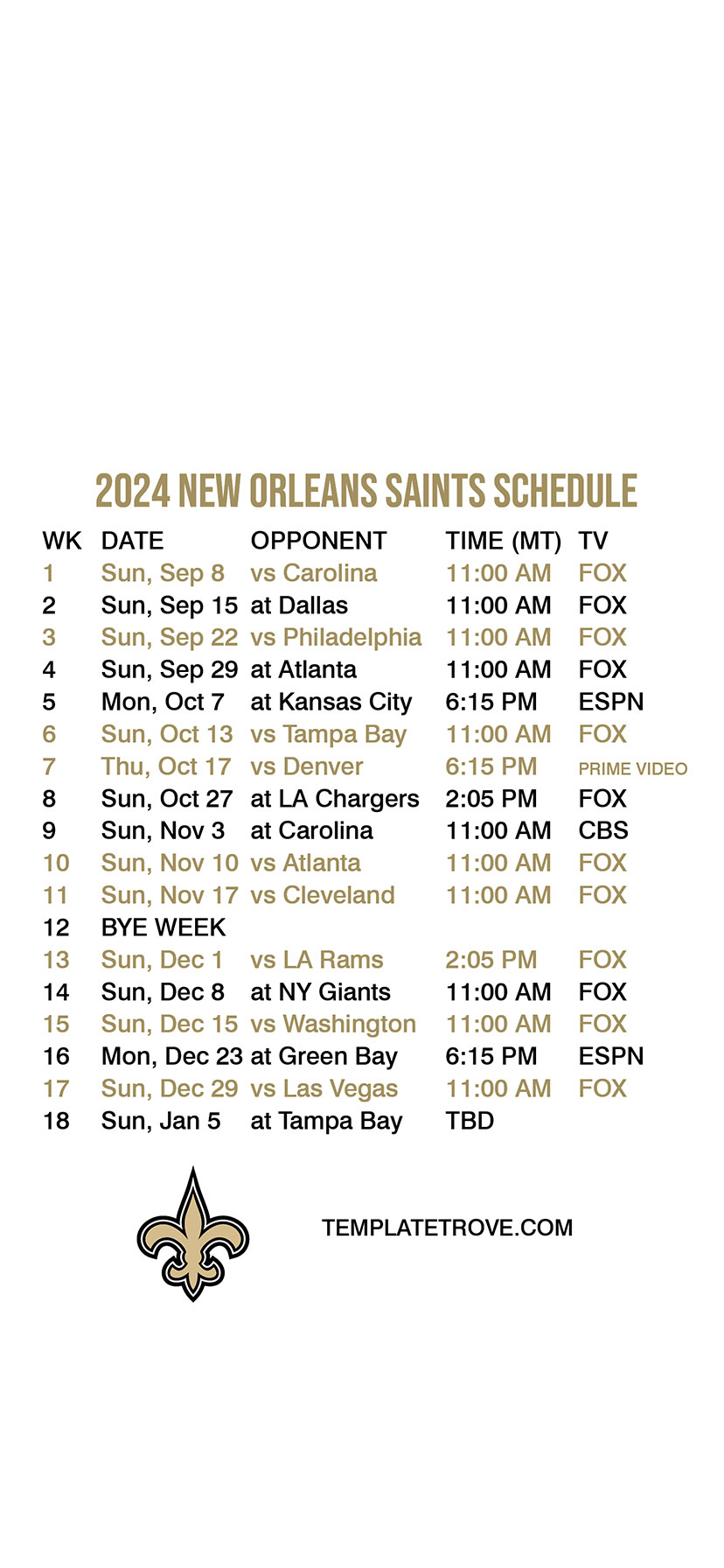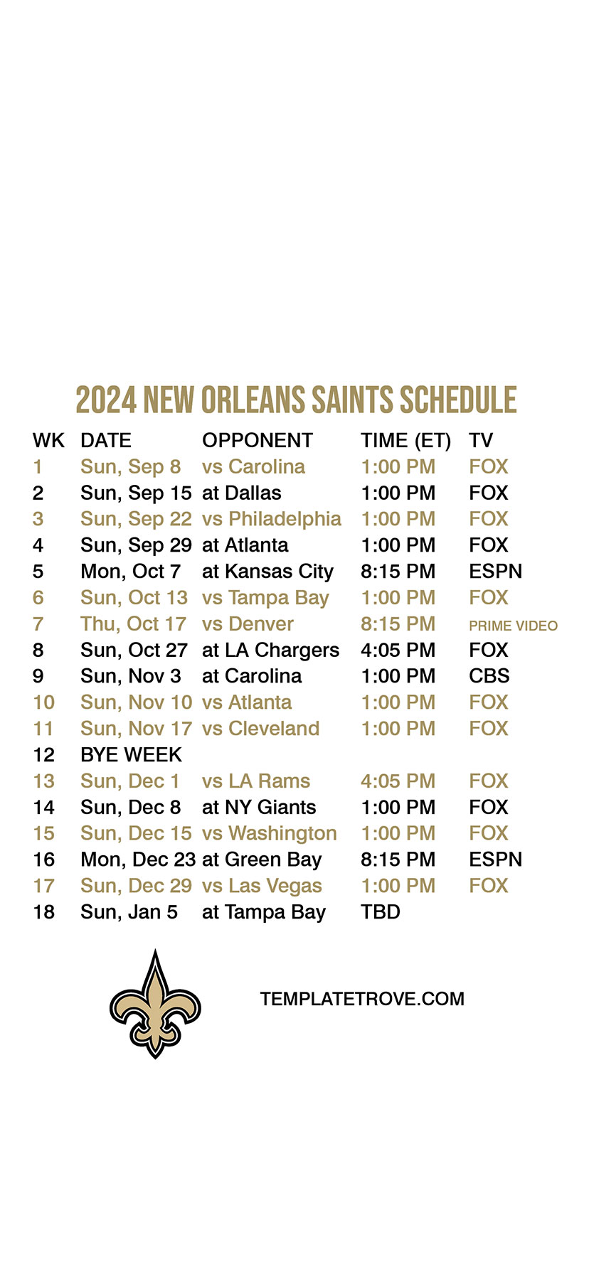 New Orleans Saints Lock Screen Schedule for iPhone 6, 7, 8 Plus