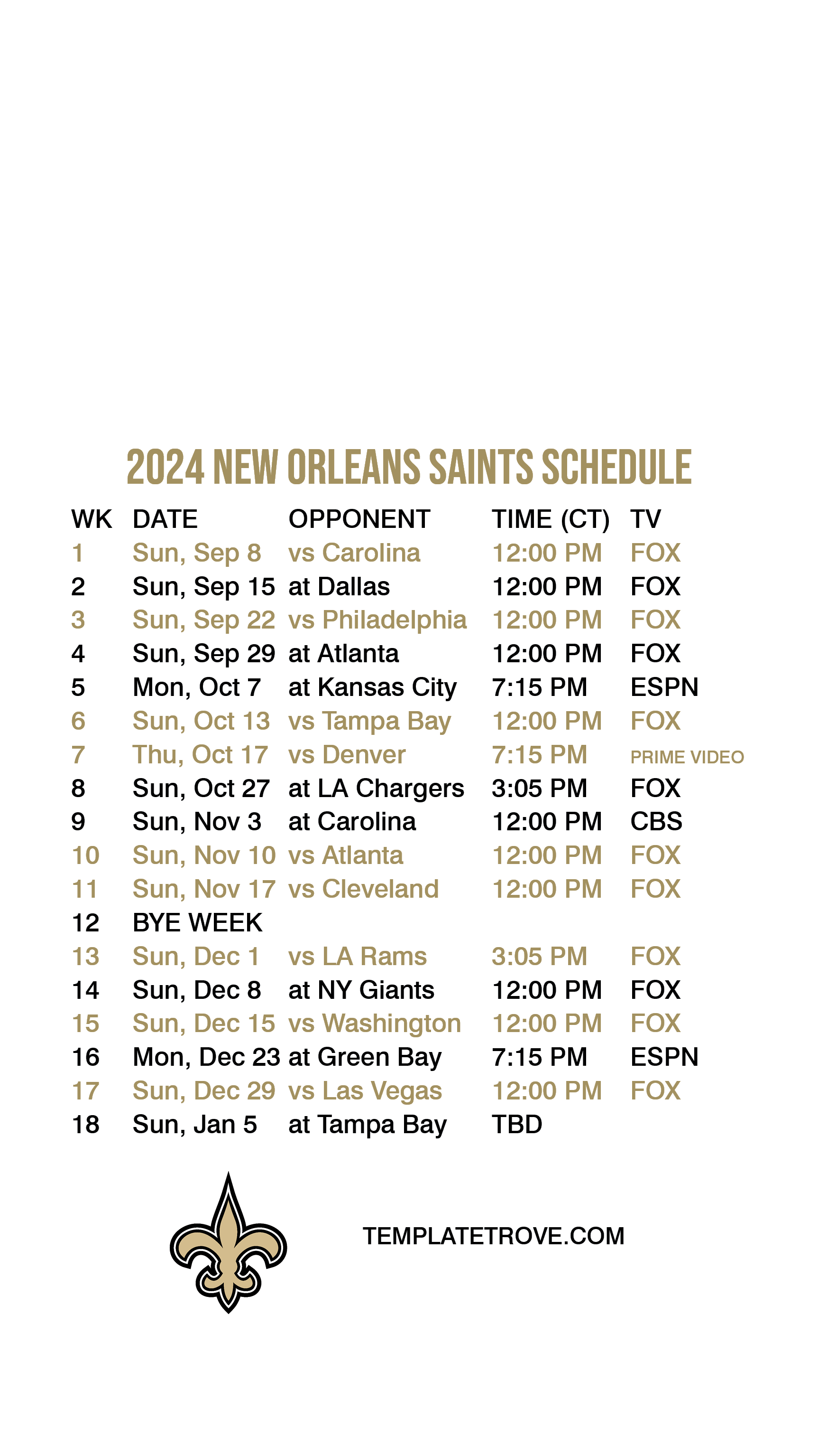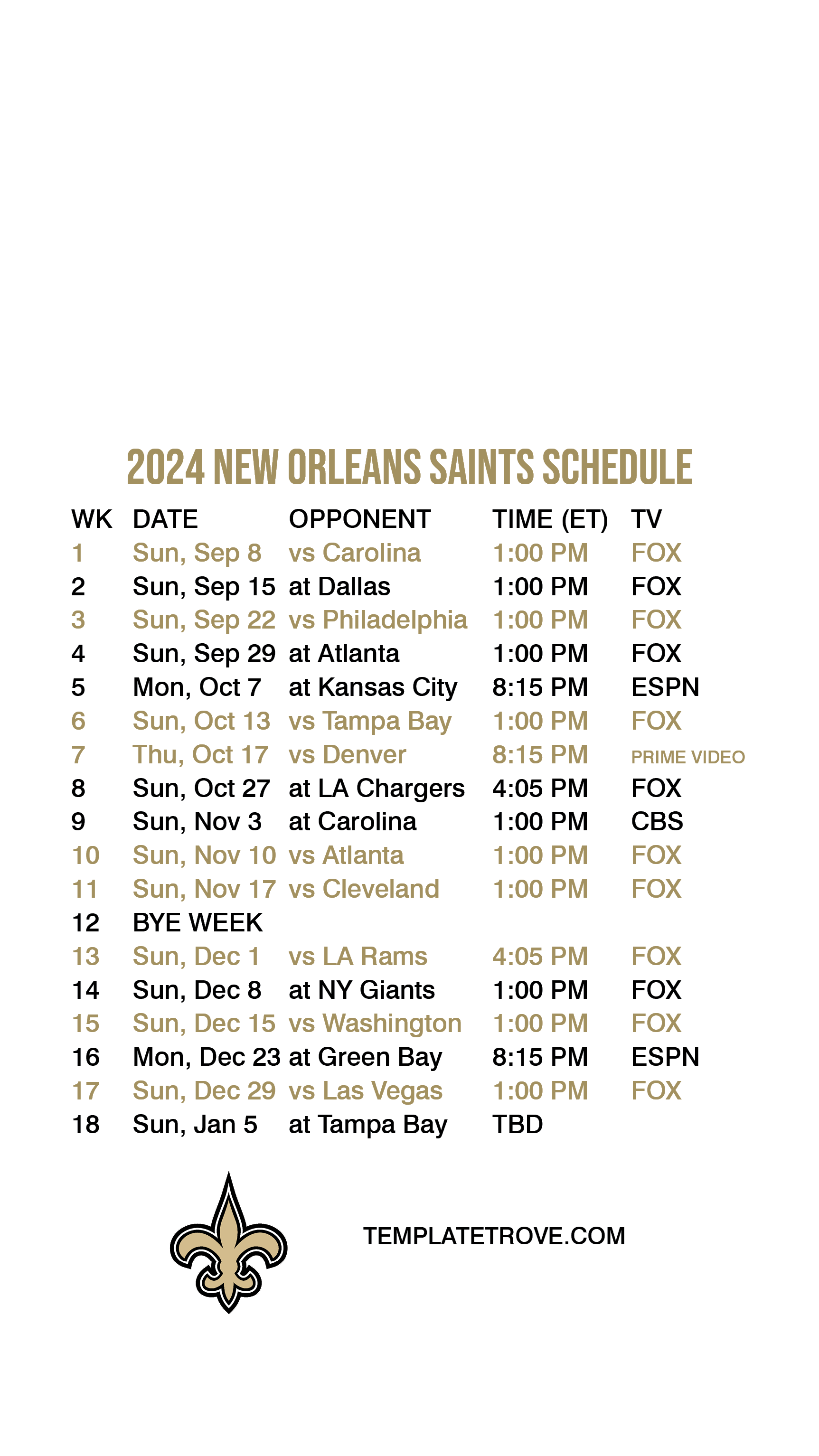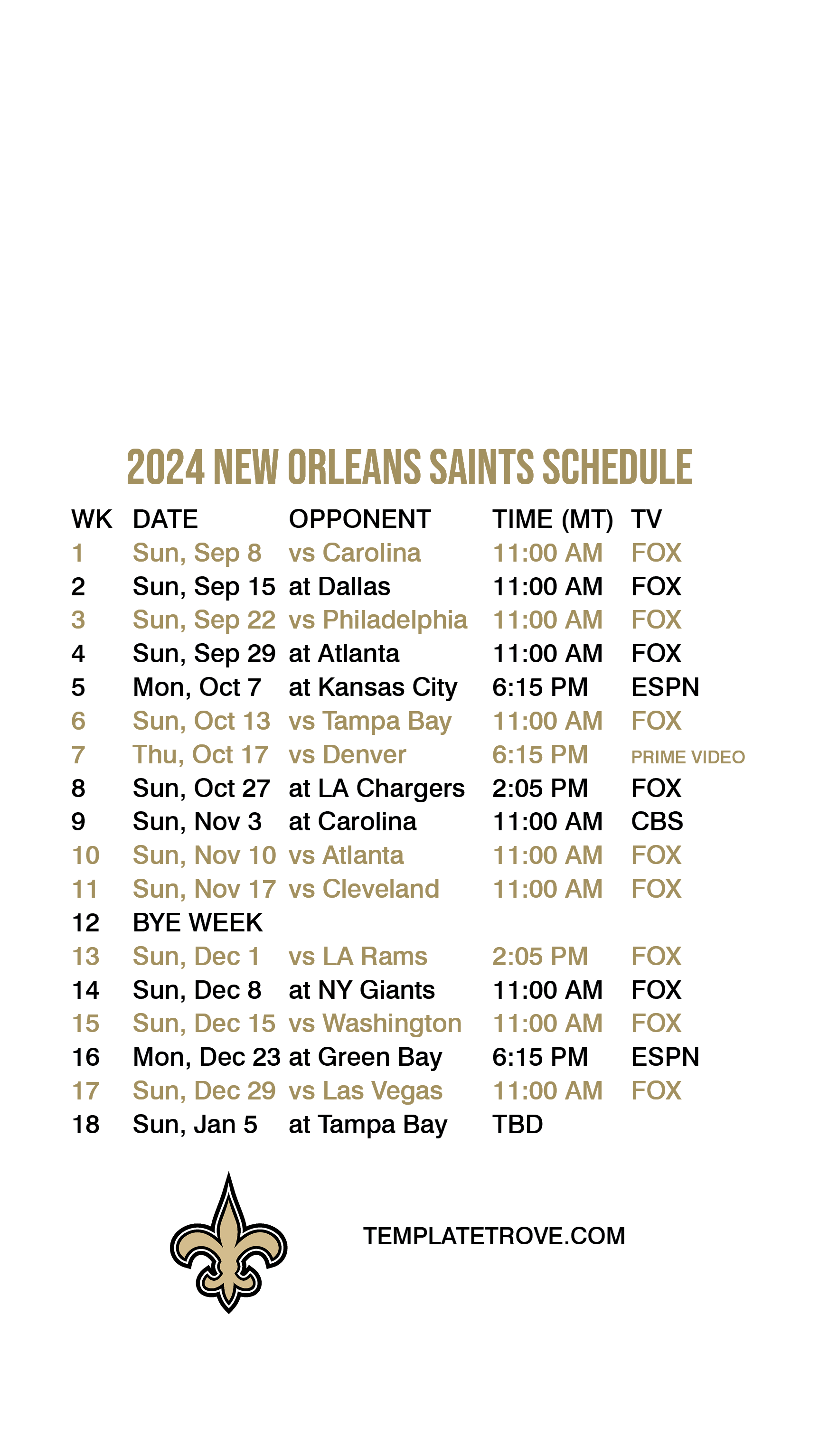New Orleans Saints Lock Screen Schedule for iPhone 6, 7, 8 Plus