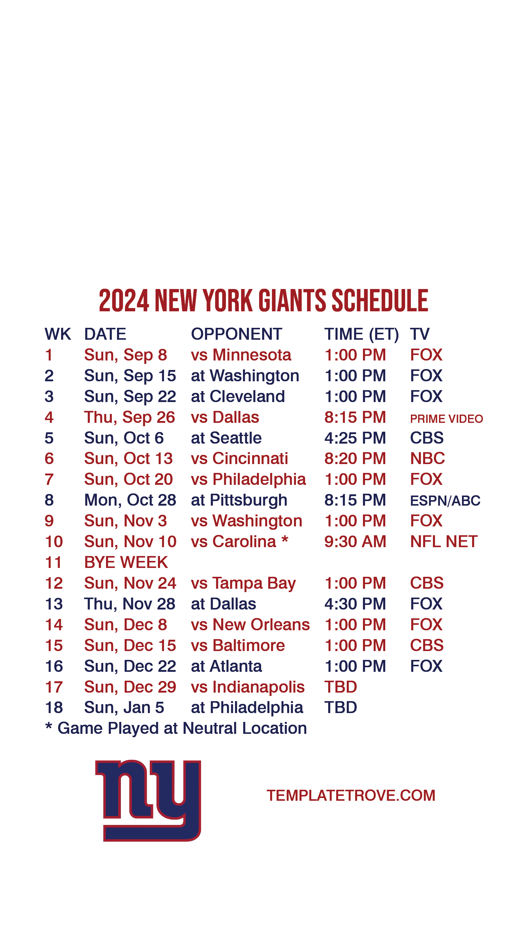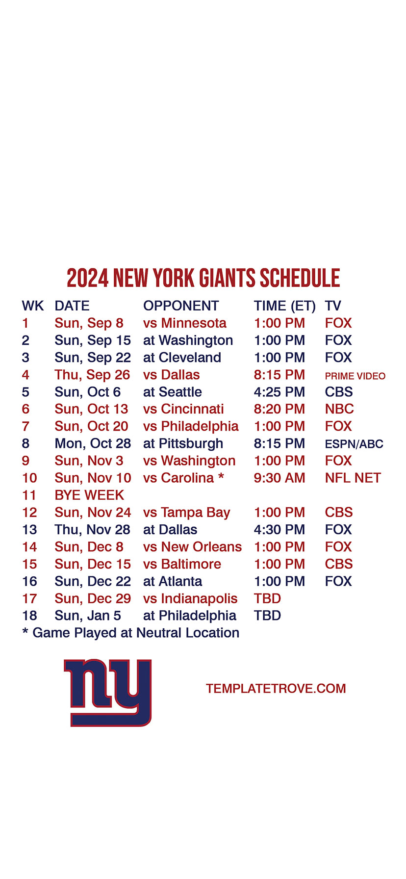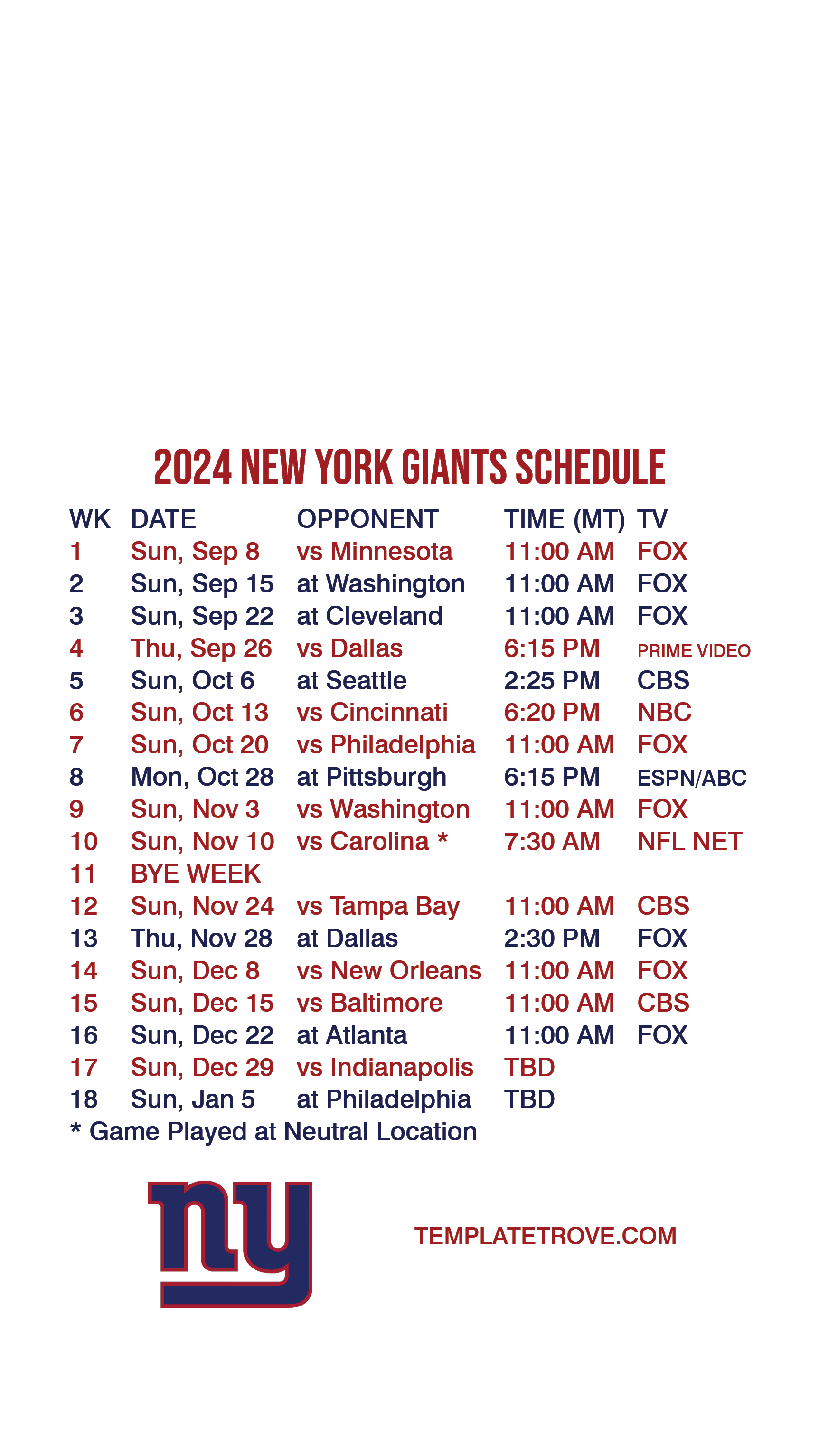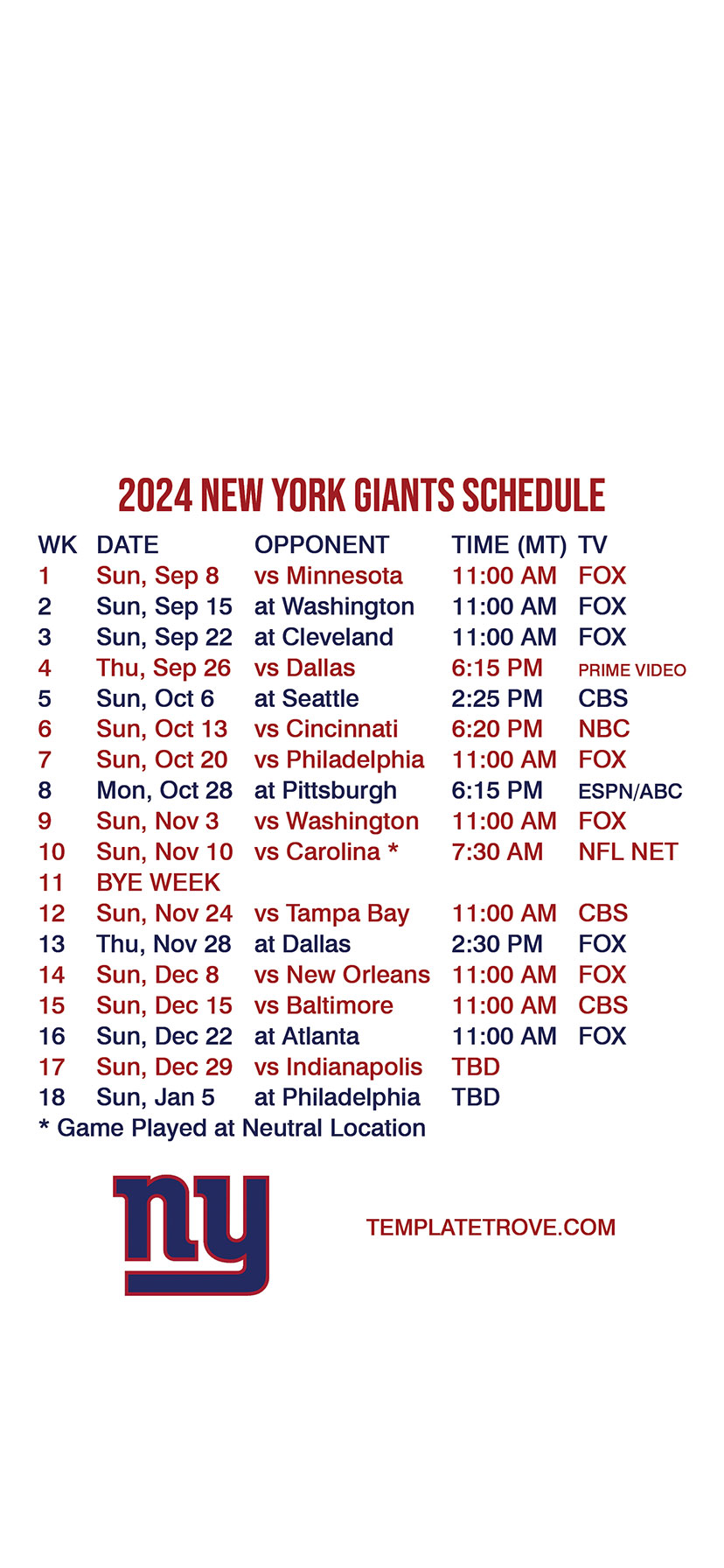 New York Giants Lock Screen Schedule for iPhone 6, 7, 8 Plus