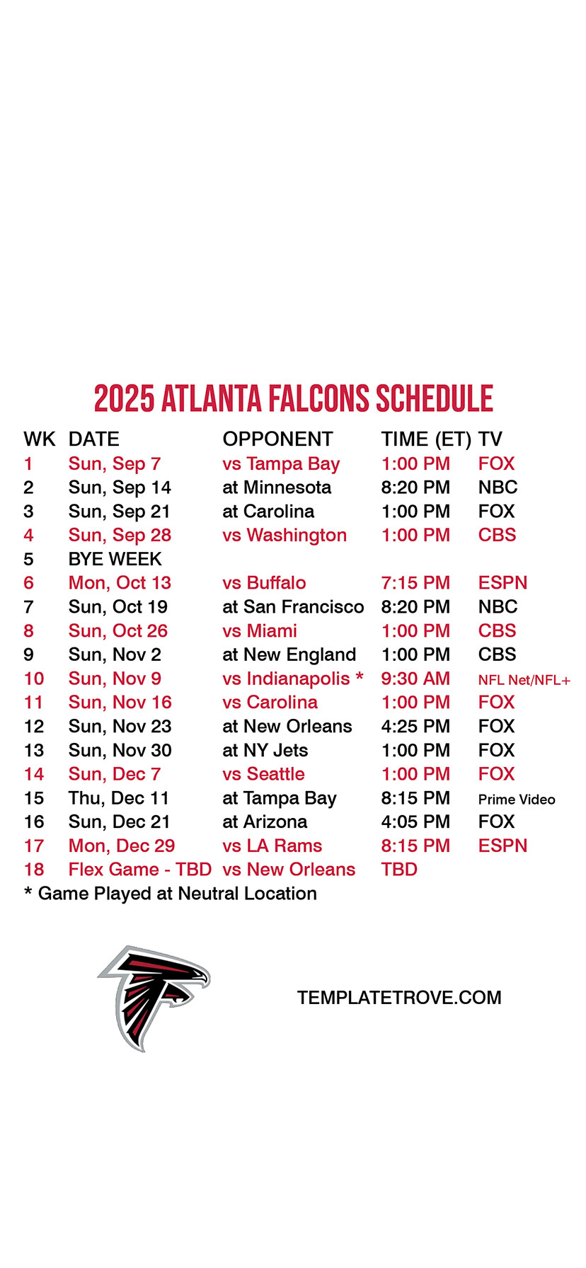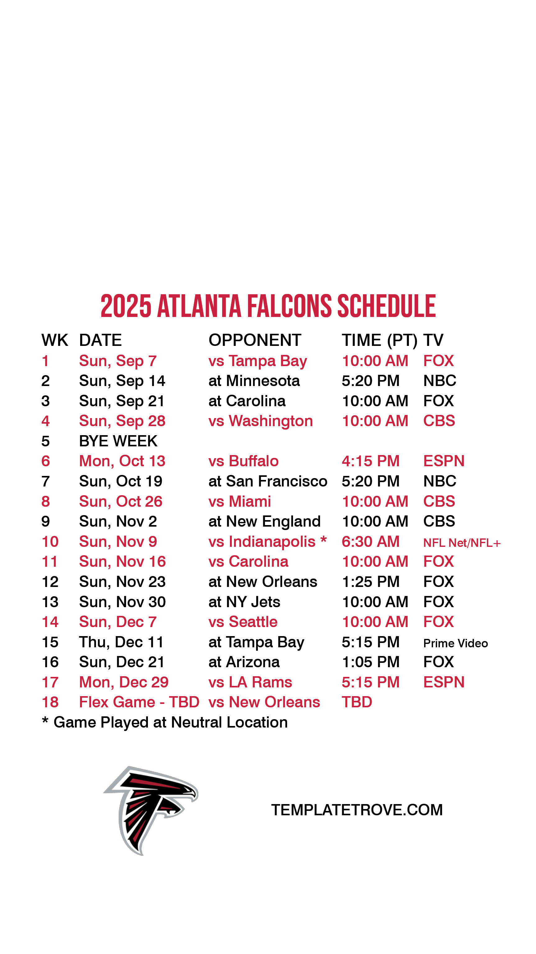 Atlanta Falcons Lock Screen Schedule for iPhone 6, 7, 8 Plus