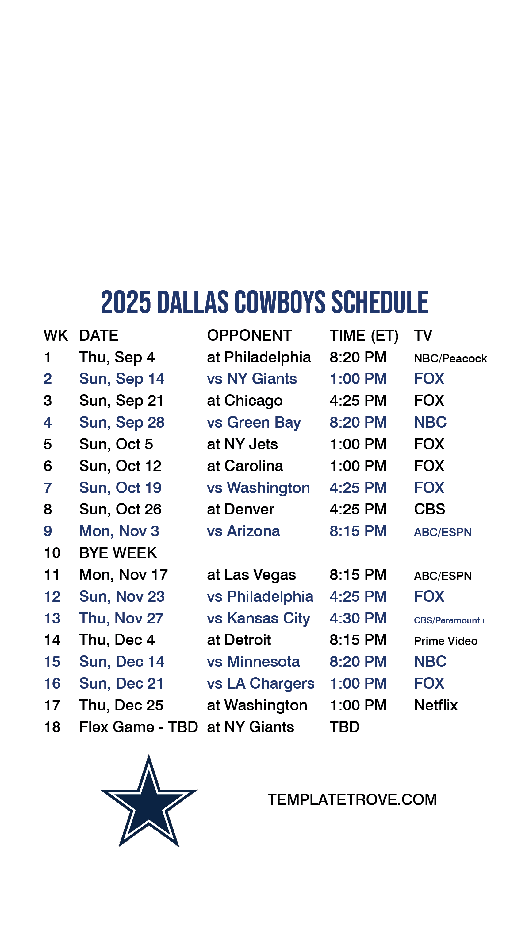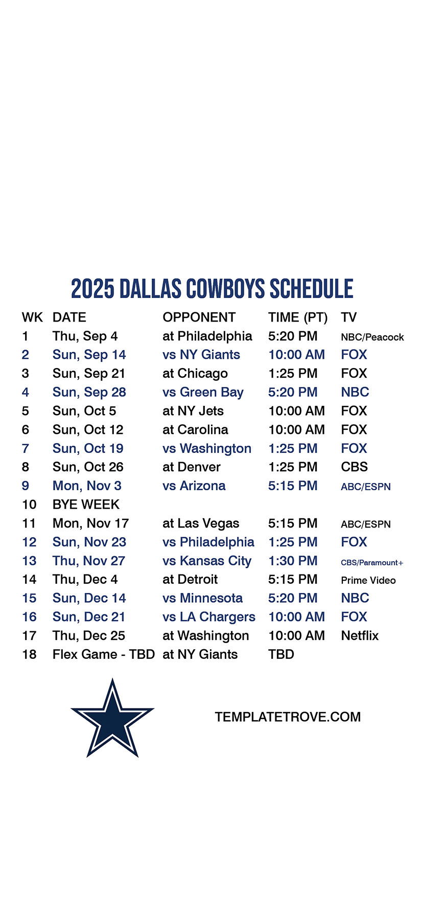 Dallas Cowboys Lock Screen Schedule for iPhone 6, 7, 8 Plus