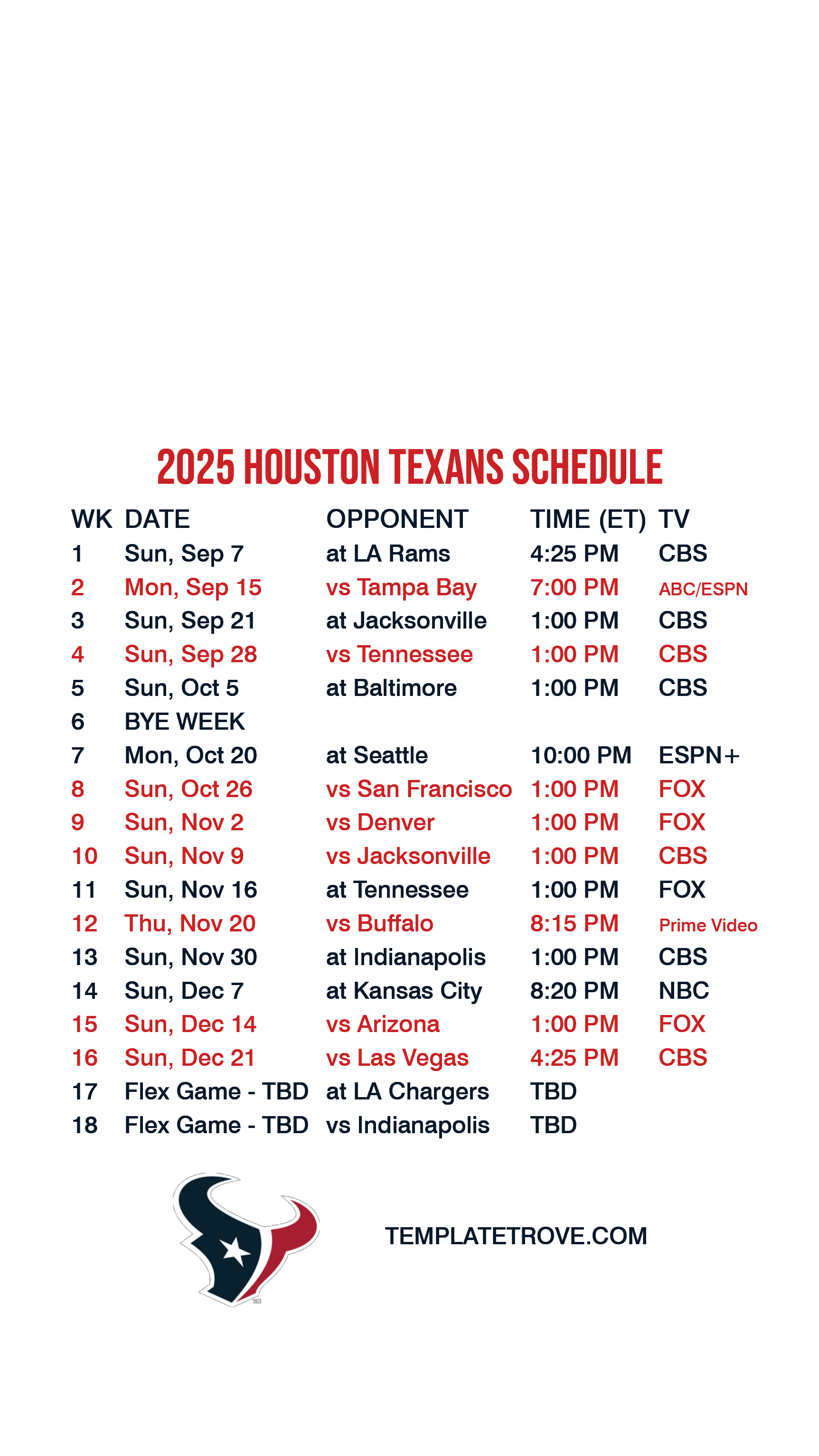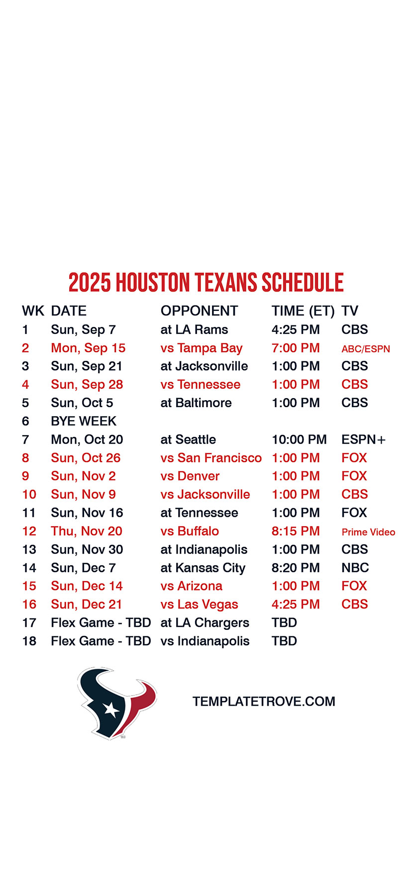 Texans. With our iPhone 6, 7 and 8 Plus lock screen schedules and