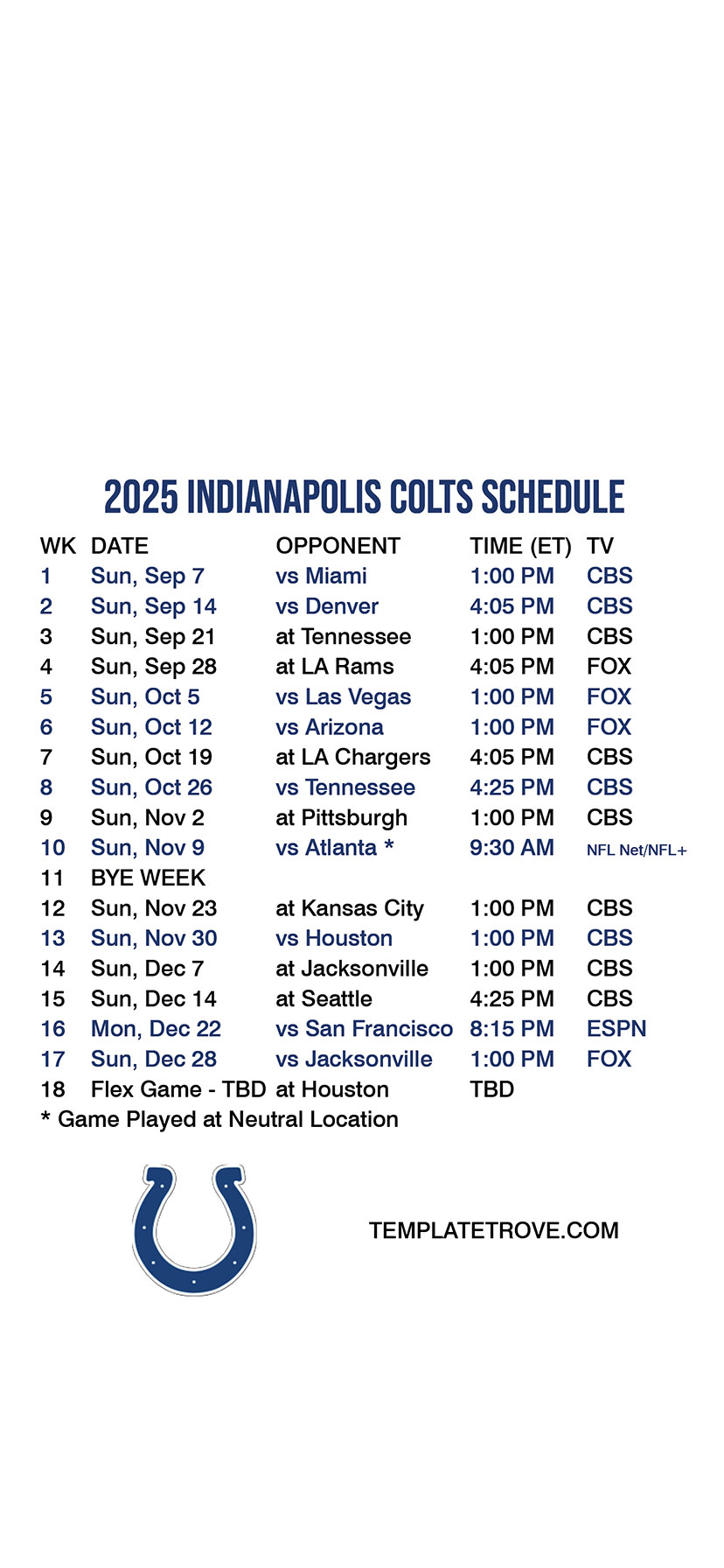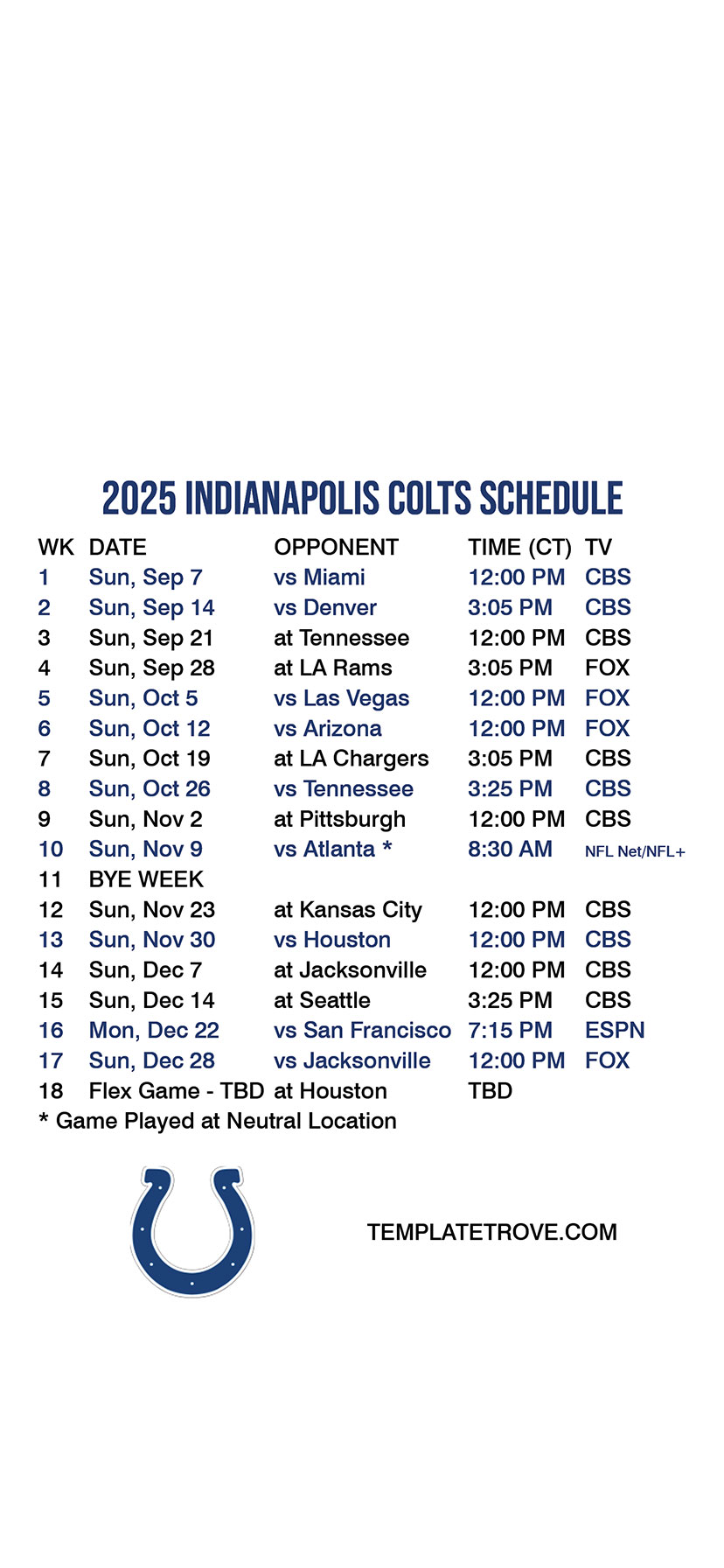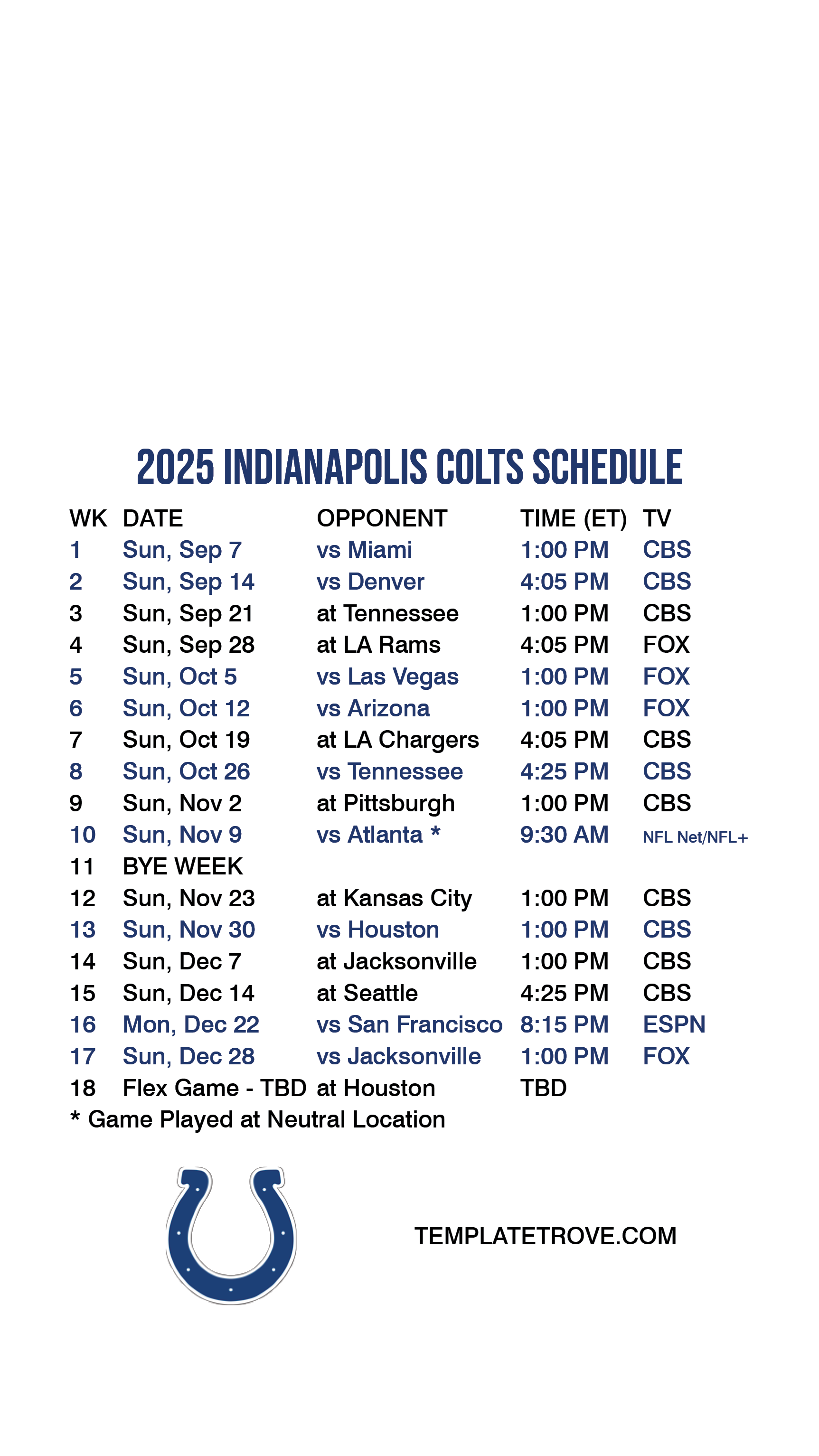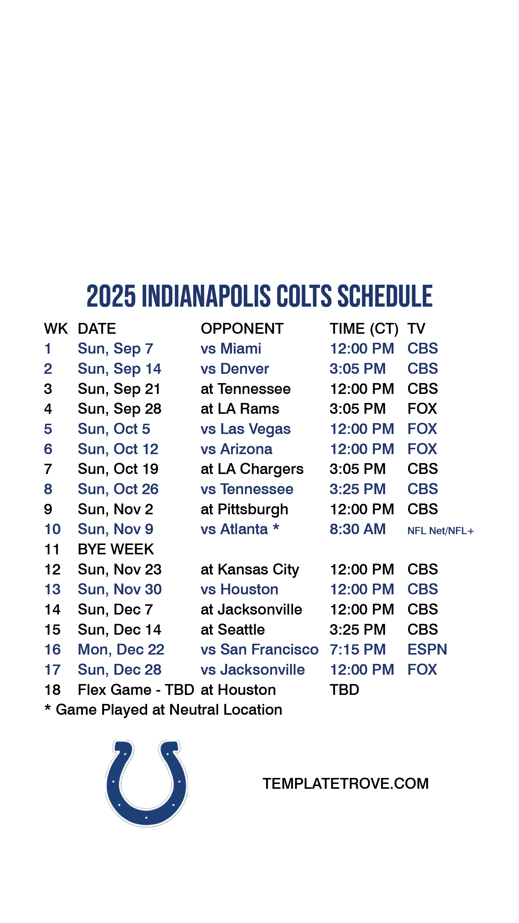 Indianapolis Colts Lock Screen Schedule for iPhone 6, 7, 8
