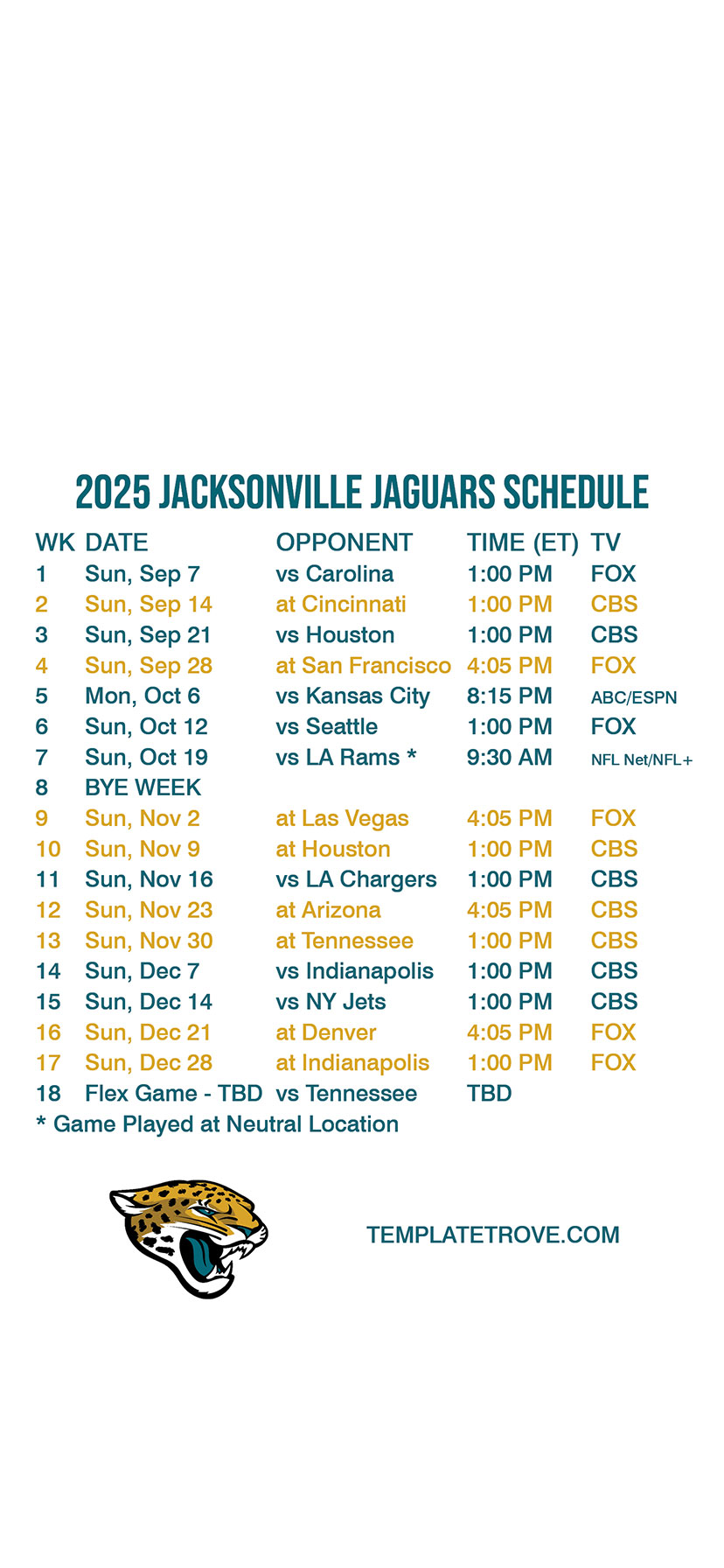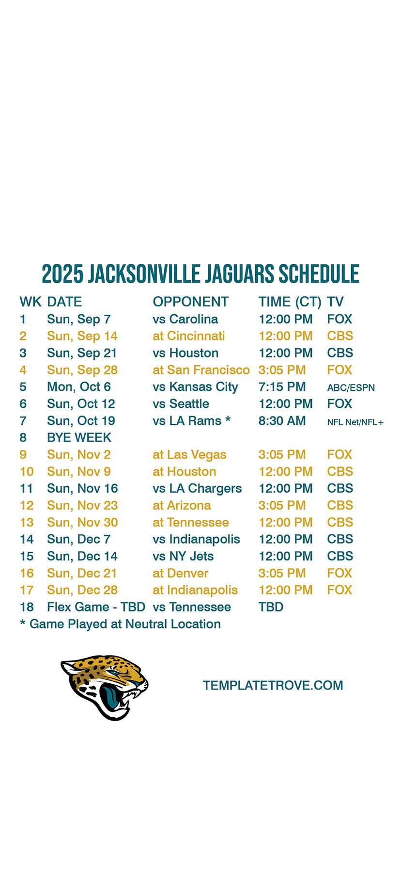 Jacksonville Jaguars Lock Screen Schedule for iPhone 6, 7, 8