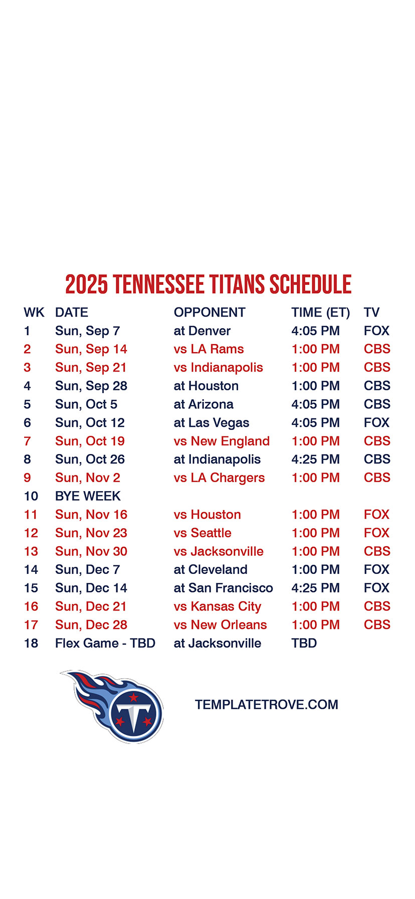 Tennessee Titans Lock Screen Schedule for iPhone 6, 7, 8