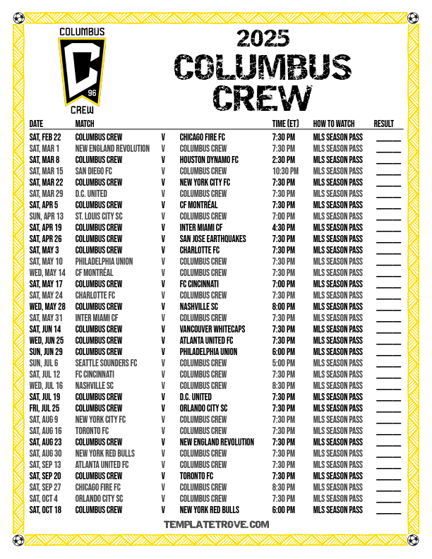 Keep up with the Columbus Crew soccer team in the 2025 season with our free printable regular season schedules.