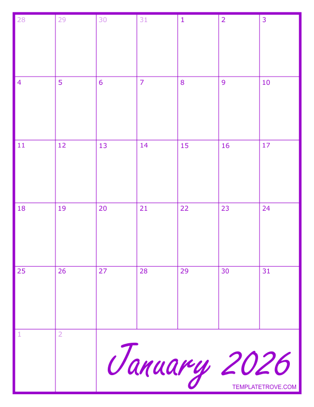 2026 Blank Monthly Calendar - Purple