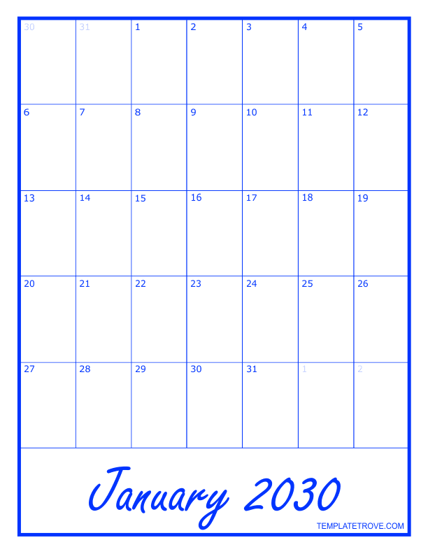Blank monthly calendars have five colors to select from and print on standard 8 1/2" x 11" letter-size paper.