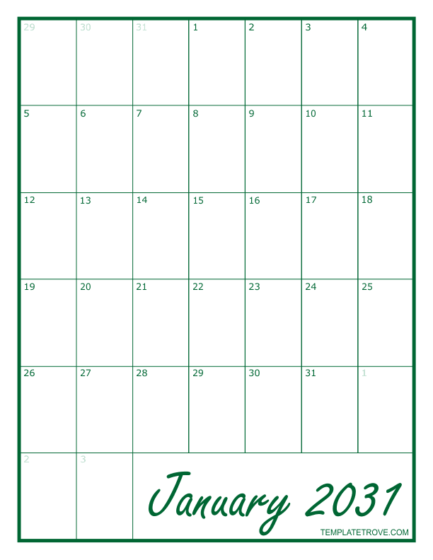 2031 Blank Monthly Calendar - Green