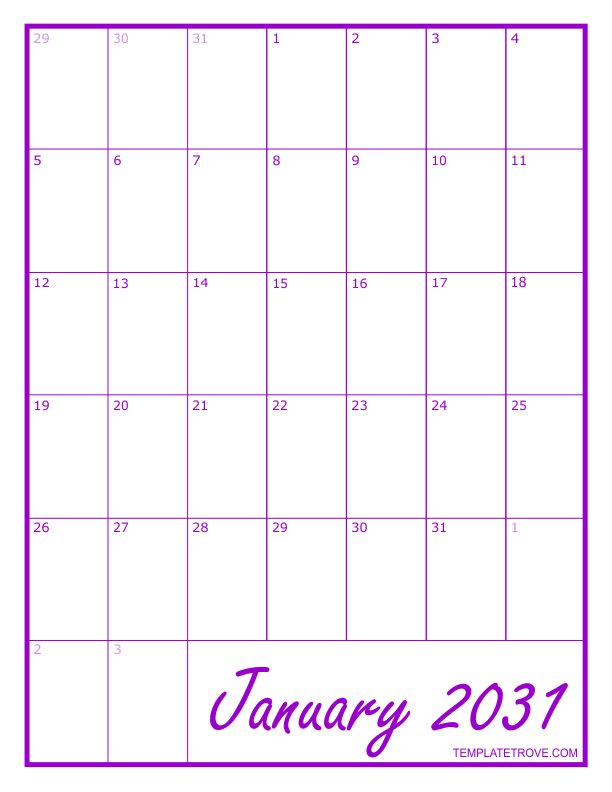 2031 Blank Monthly Calendar - Purple