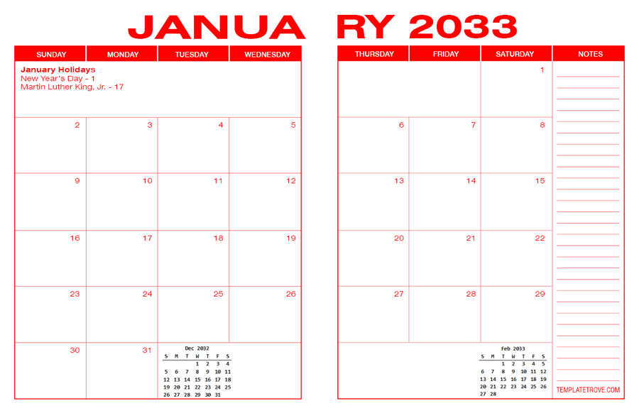 2033 Desk Calendar - Red
