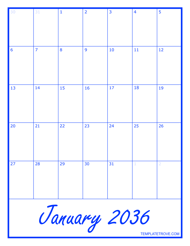 Blank monthly calendars have five colors to select from and print on standard 8 1/2" x 11" letter-size paper.