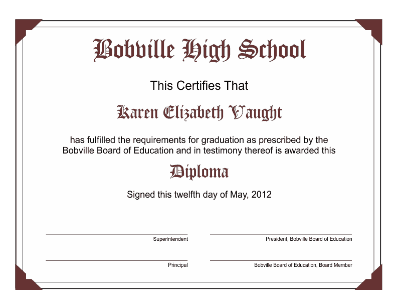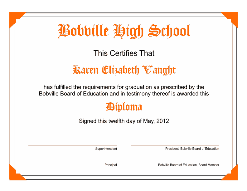 Our free diploma templates prints on letter size stock. Available for download in Corel Draw and Word formats.