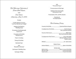 your own wedding program at home on pre-printed and perforated paper