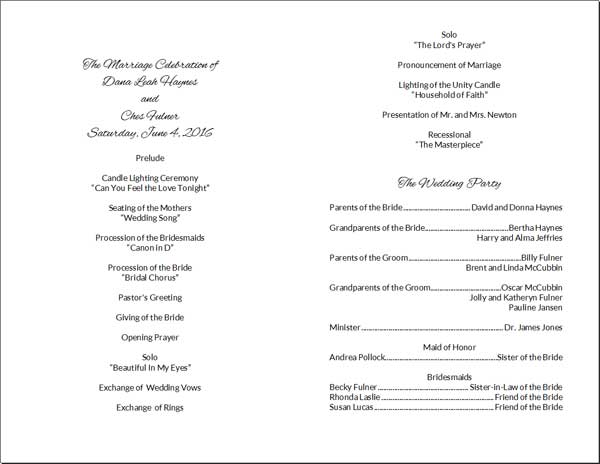 DIY Wedding Program Card 1 - Font 2