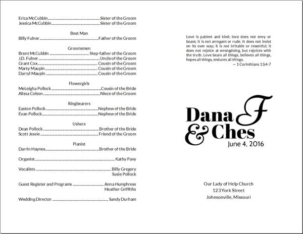 DIY Wedding Program Card 1 - Font 1