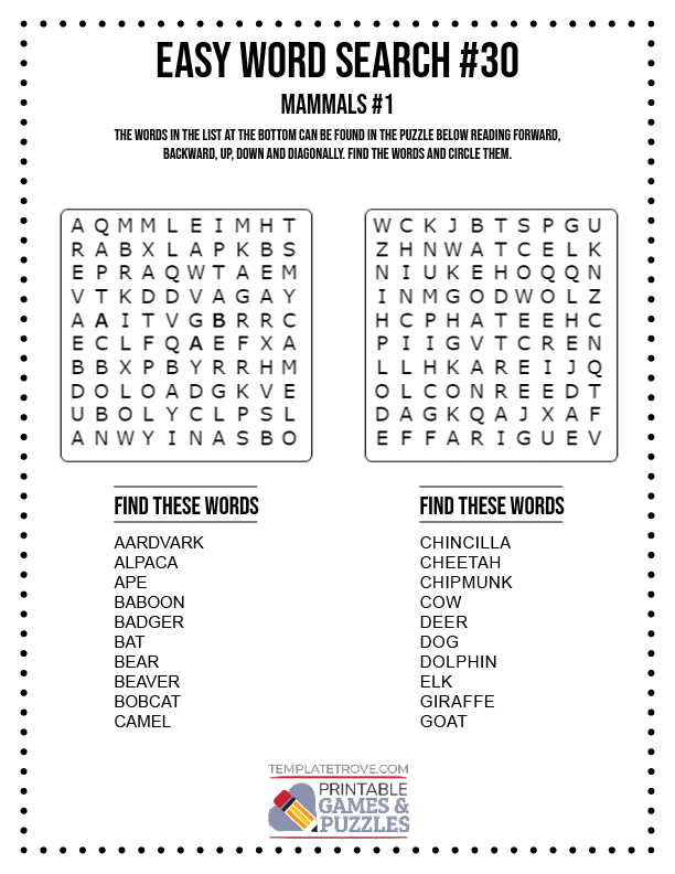 Template Trove provides a variety of free word search printable puzzles that are perfect for keeping your mind sharp.