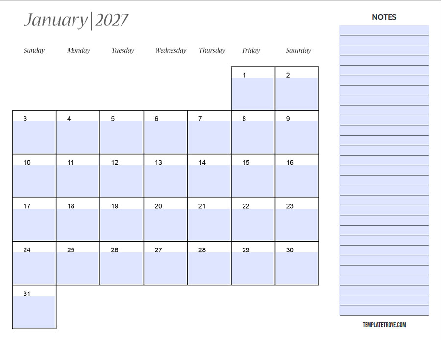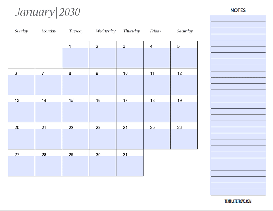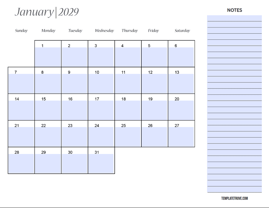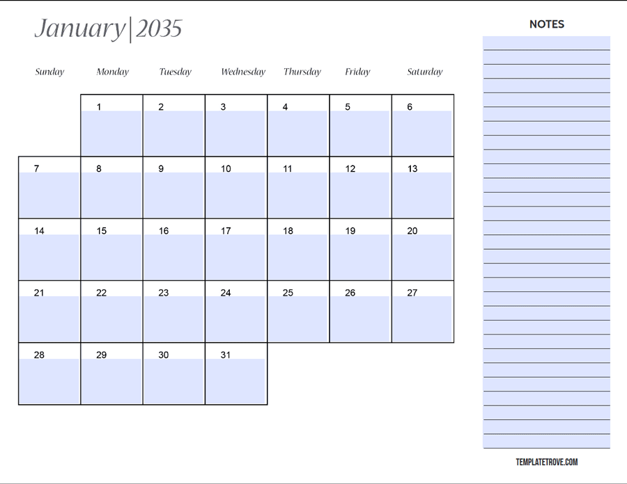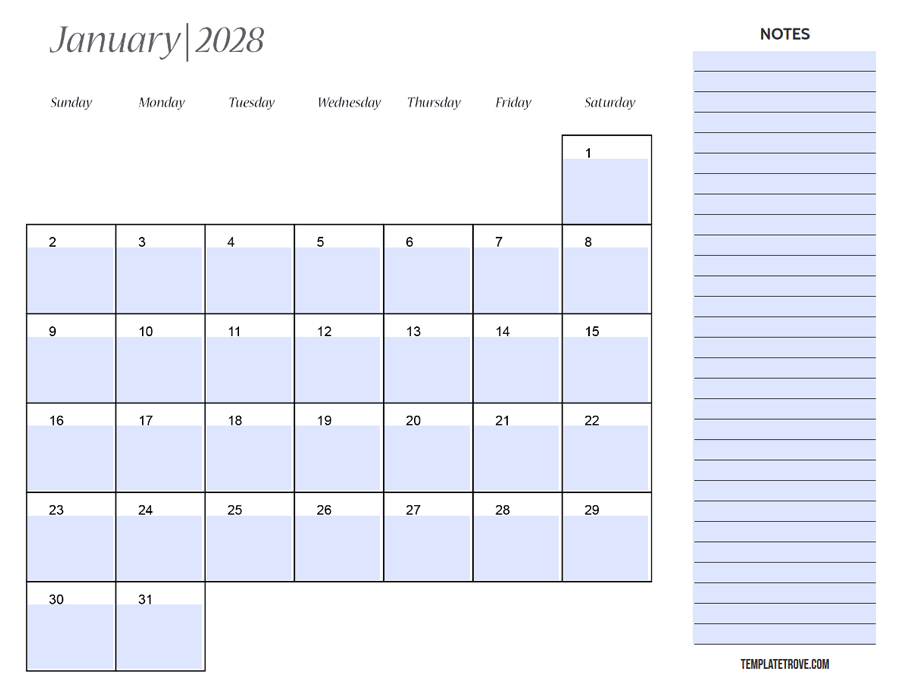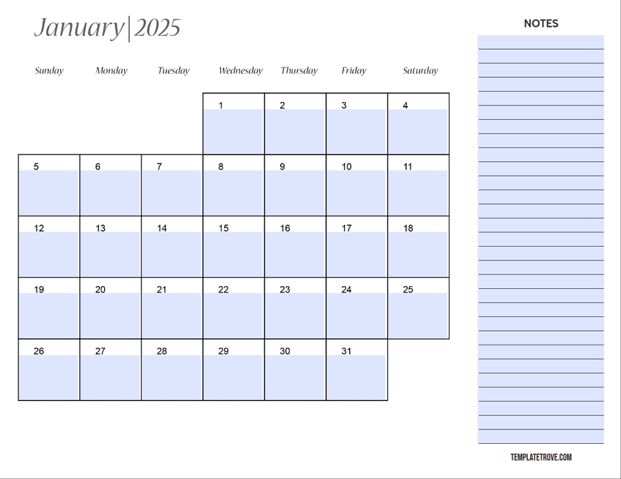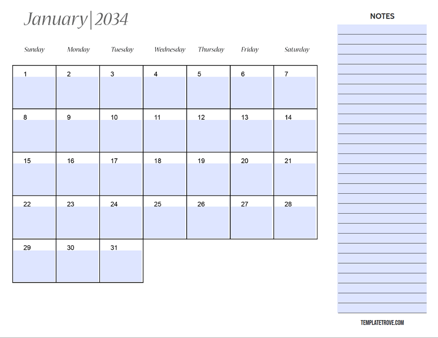 Whether you’re looking for a yearly calendar, a monthly calendar, or even a weekly calendar, we have something to suit your needs. Plus, our calendars are fully customizable, so you can add your own events and notes. So why wait? Start planning today with Template Trove!