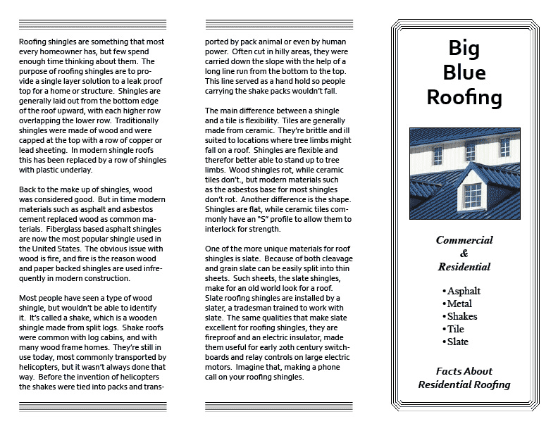 Tri-fold InDesign and Word brochures print on letter size stock. Prints both sides of sheet. Layouts differ for each format.