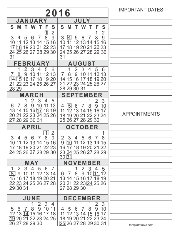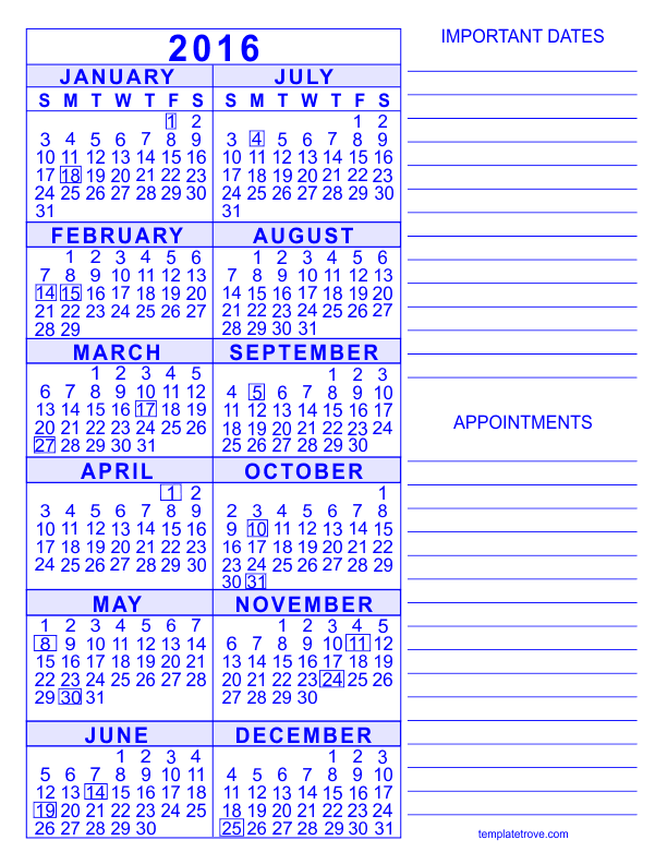 Calendars are available in PDF format. Several styles and colors to choose from and can be printed on standard letter size paper (8 1/2" x 11"). Each calendar page is in yearly format with 12 monthly calendars per page.