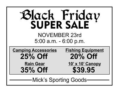 This two-sided postcard template is perfect for sale announcements or can be modified for just about any use.