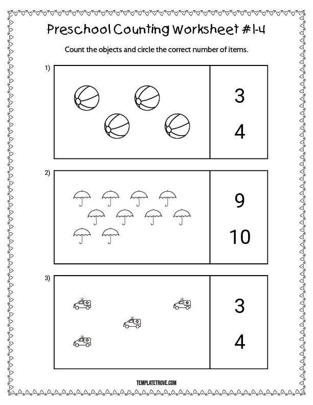 Our preschool counting worksheets are conveniently available in