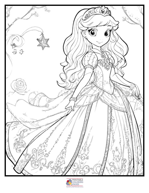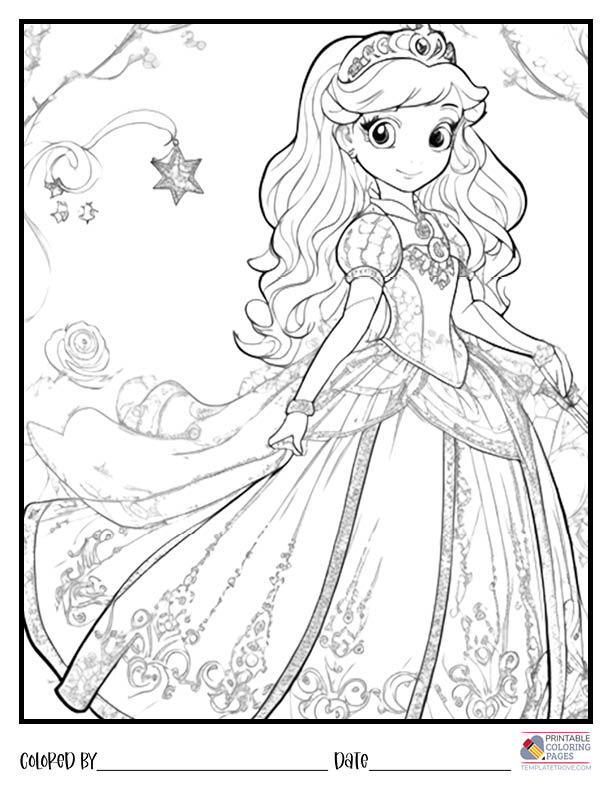 the night sky with our free printable Princess coloring pages.